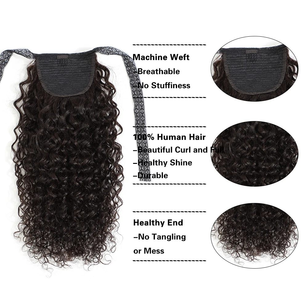 Модный Плюс кудрявый конский хвост 100% человеческие волосы удлинители кулиска конский хвост удлинители волос с зажимом Реми волосы для черных женщин