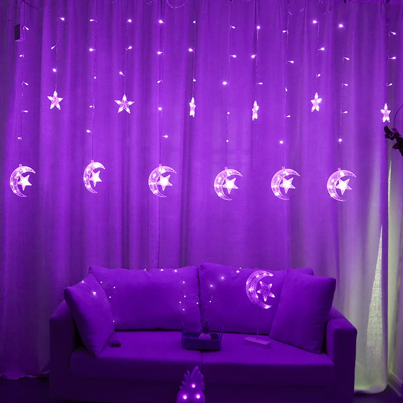 Лунный светильник в виде пентаграммы, гирлянда со светодиодными занавесками, Рождественское украшение для дома, свадебные праздники, Вечерние огни для украшения, фоновые огни, окно для девочки, сердце, мигающий свет, струны для спальни, ледяные огни