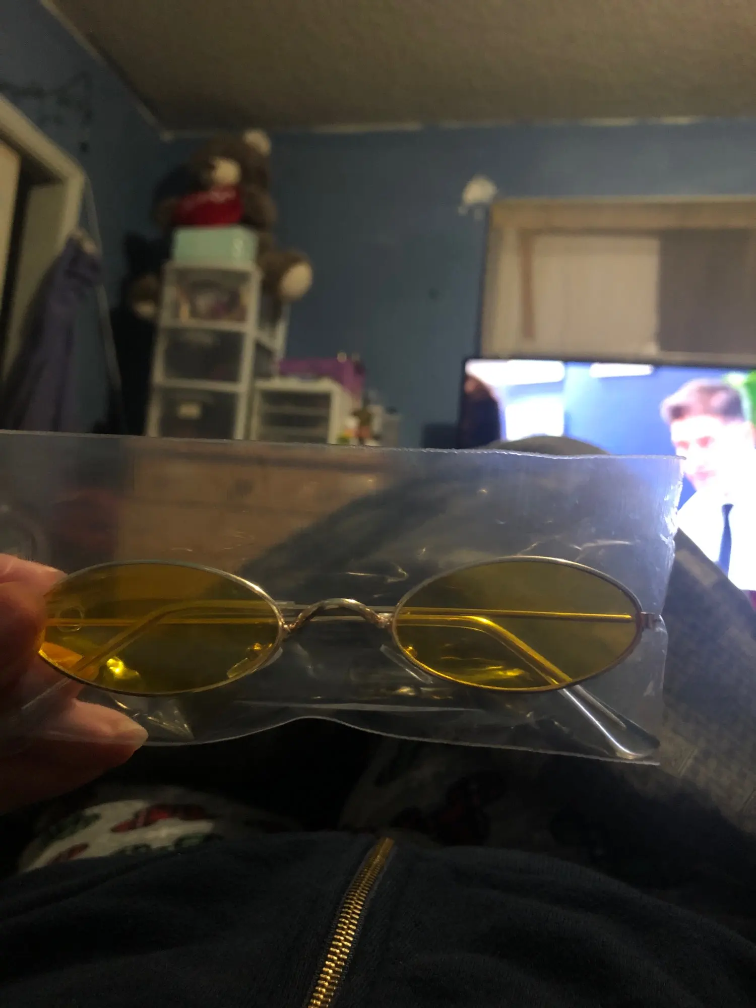 Прикольные очки, сначала заказала жёлтые, потом написала продавцу и поменяла на голубые. Спасибо продавцу.