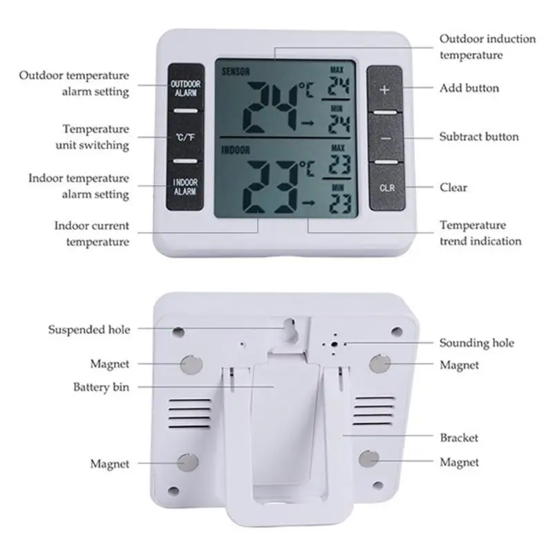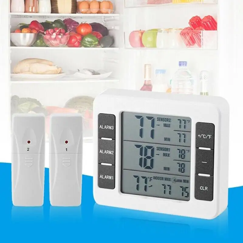 Беспроводной цифровой звуковой термометр холодильник с сигнализацией с датчиком 12 шт. мин.Макс. Дисплей, термометр для использования в помещении и на улице 37
