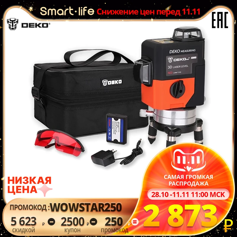 Дальномер Лазерный уровень DEKO HV-LL12R 3D (12 линий, красный) супер мощный 360 вертикальные и горизонтальные самонивелирование