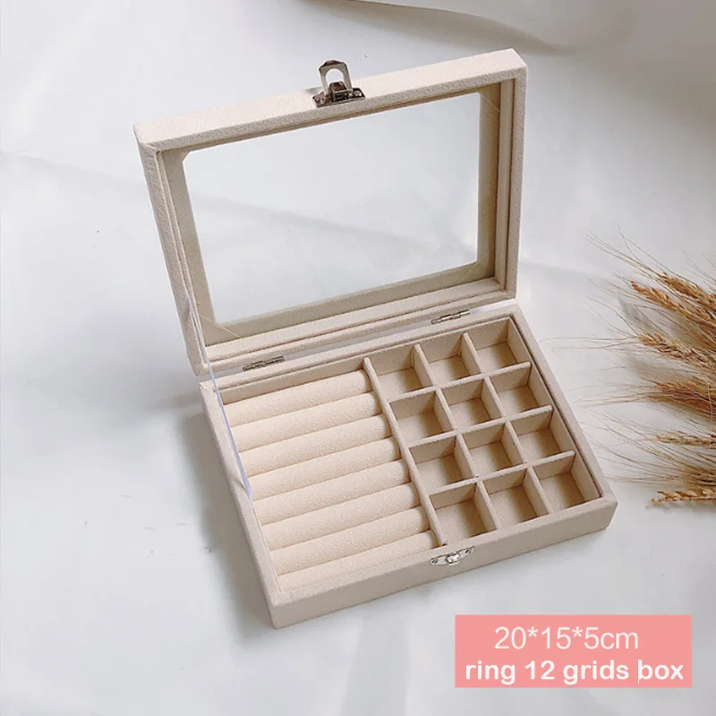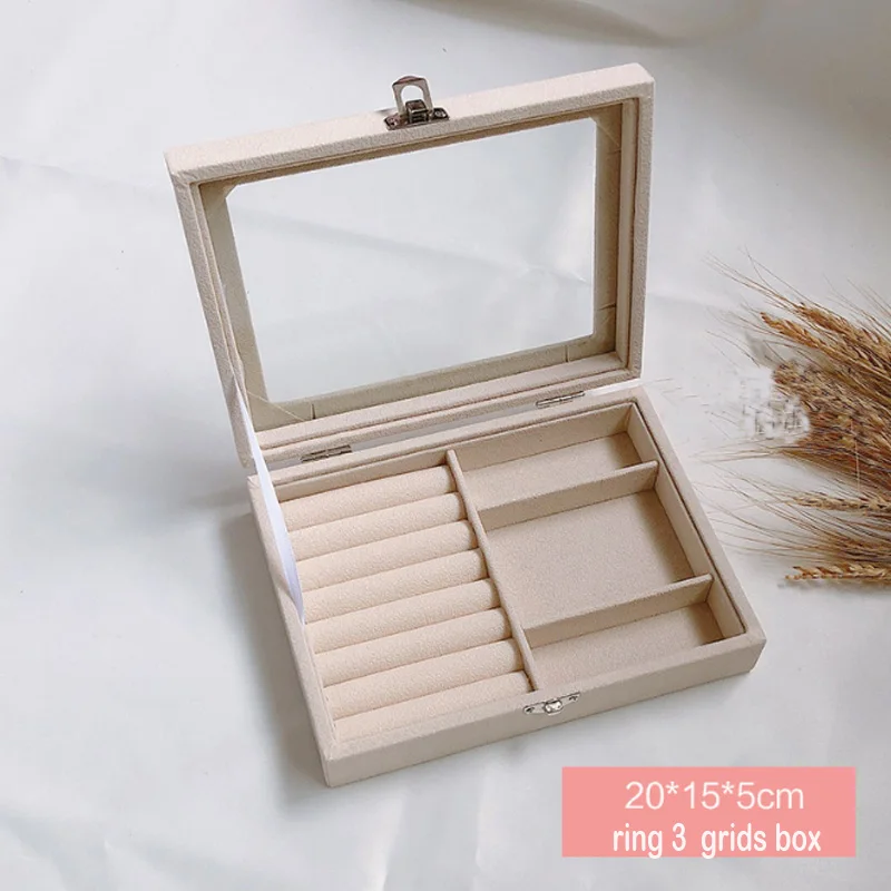 Лидер продаж, бежевая бархатная шкатулка для ювелирных изделий, чехол для колец, сережек, браслетов, ожерелий или других украшений, органайзер для хранения