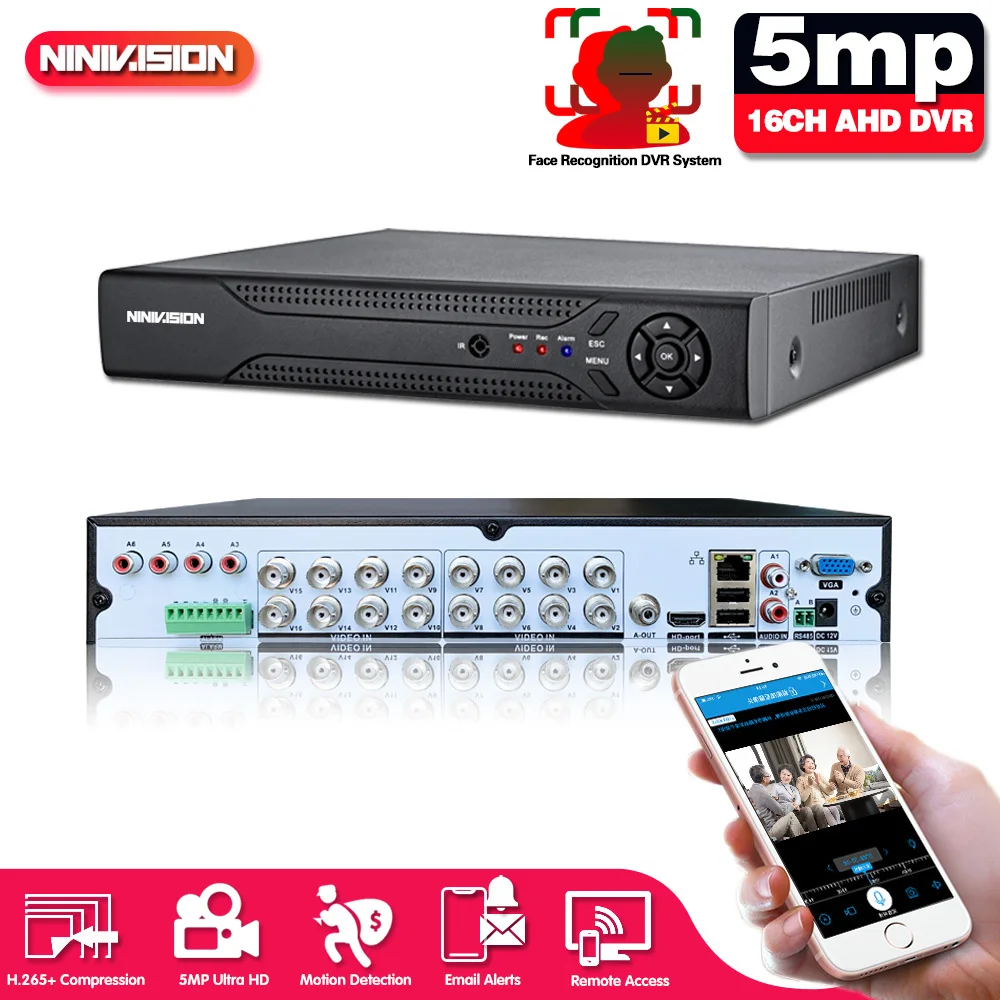 Видеорегистратор NINIVISION H.265 + Hi3531, гибридный аналоговый прибор 6 в 1 для системы видеонаблюдения, 5 МП, 4 МП, 16 каналов, TVI, CVI, NVR, AHD, CCTV