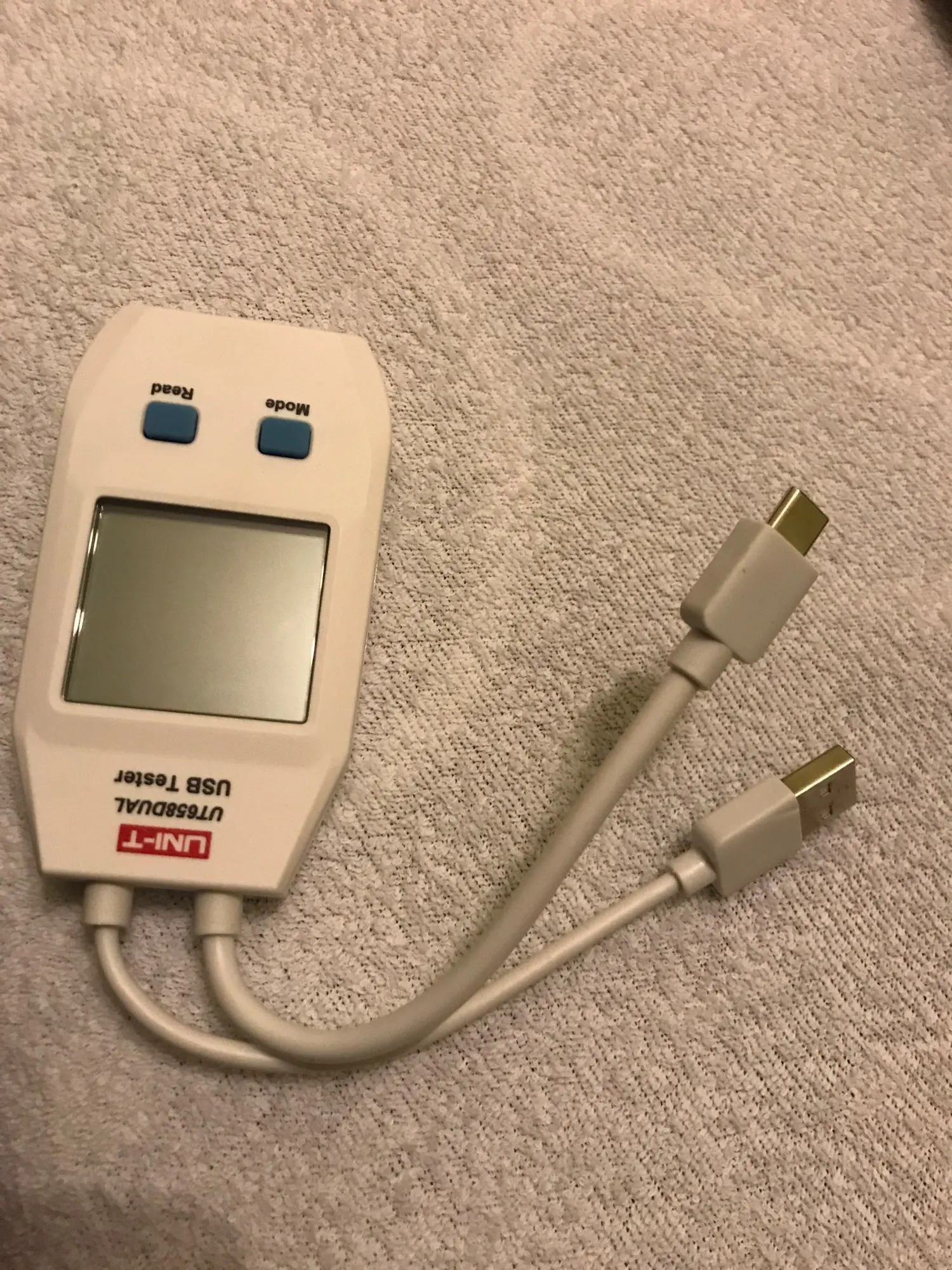 Я не впечатлен. Этот тестер плохо спроектирован, и качество продукции тоже не отличное. Он не помнит собранные значения при выключении питания (если вы не поместили данные в слот для памяти вручную); он плохо откалиброван (напряжение линии передачи данных выключено на 20 мВ); Он не регистрирует небольшие Токи (менее 10 мА); Он не имеет входных гнездовых разъемов, Только эти тупые косички; Отображение углов обзора не является отличным, и расположение значений на нем неудобно (десятичные точки для разных значений (даже когда они одного типа) на разных позициях).