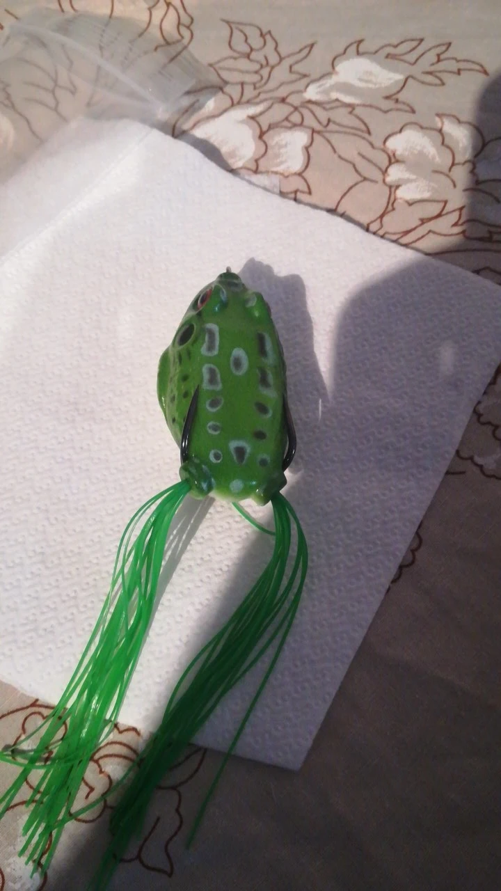 Лягушка понравилась. Ловить будет, правда я ей груз перенес на нос и крючок добавил. Доволен покупкой, рекомендую. Качественно сделаны. Шли 1 месяц.
