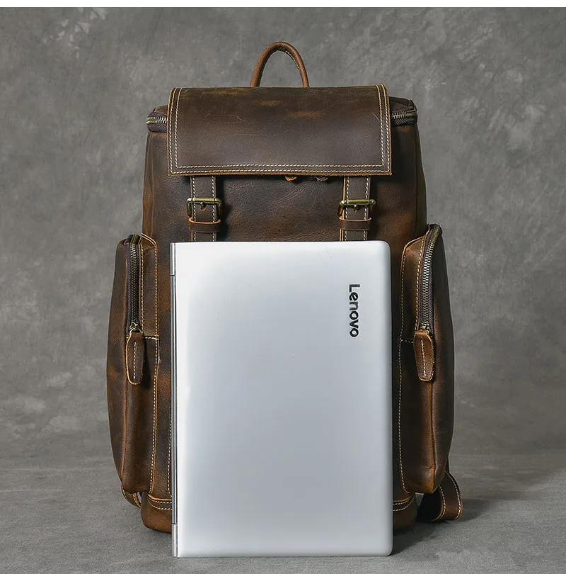 Рюкзак мужской, из натуральной кожи, для ноутбука 15,6 дюйма, в стиле ретро