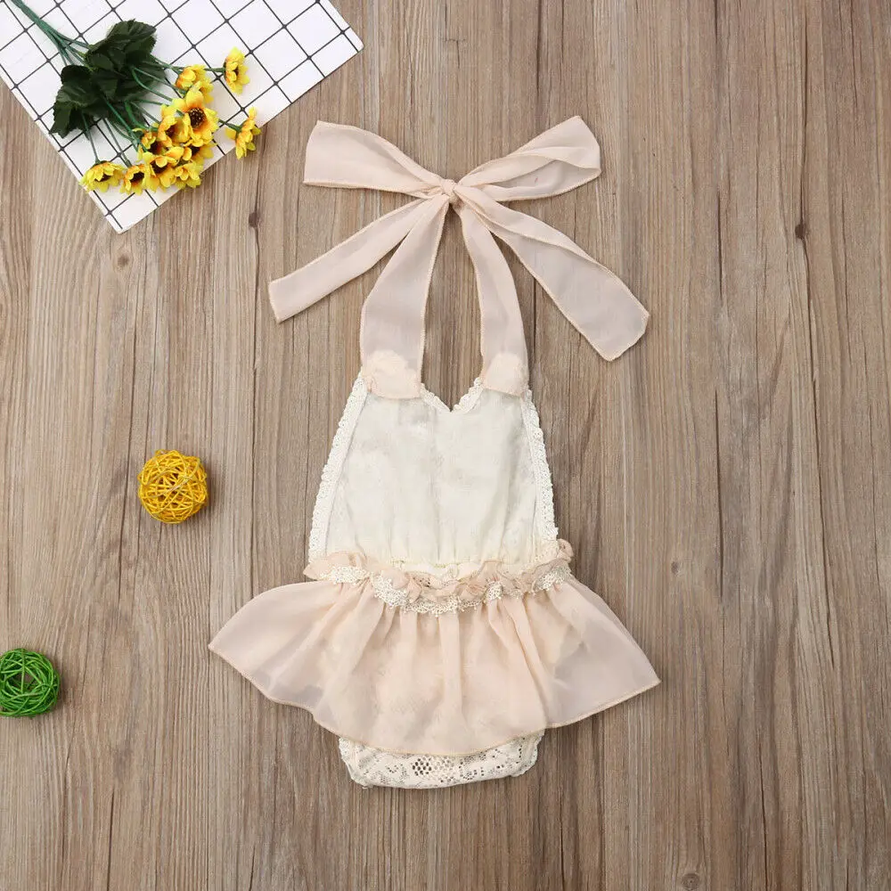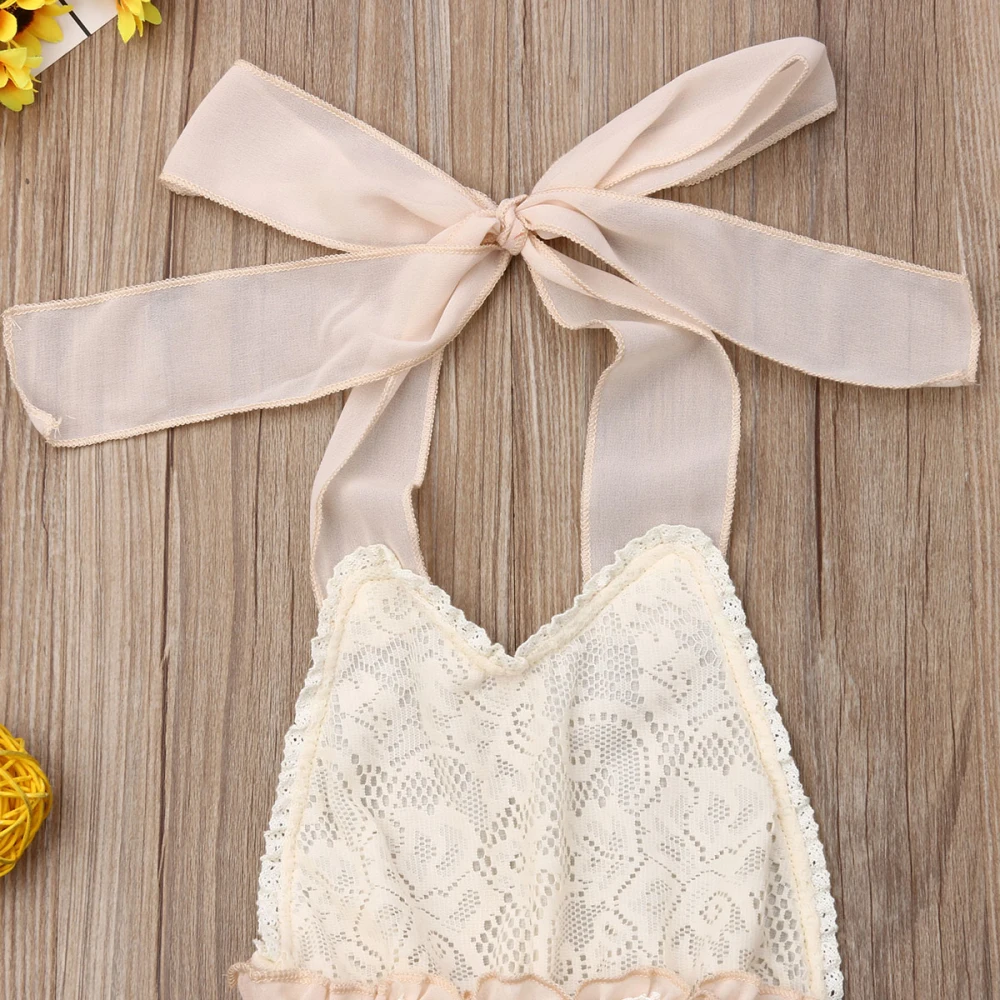 Летний комбинезон для новорожденных девочек, кружевной однотонный комбинезон без рукавов с поясом, наряды 3-24 месяцев
