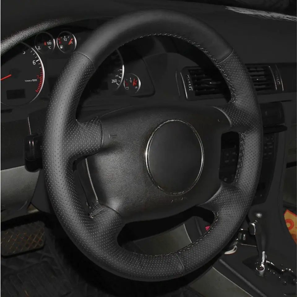 Ручная пришивка черный чехол на руль из натуральной кожи для Audi A...