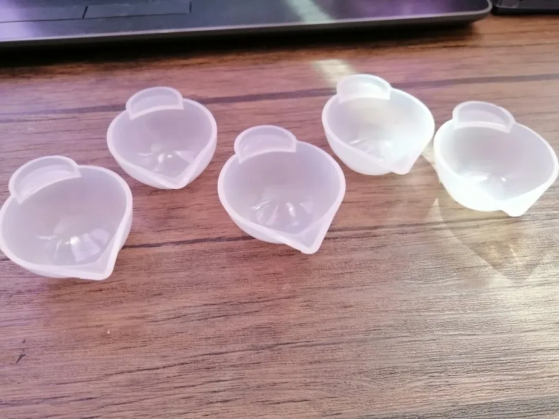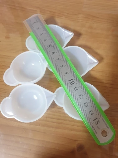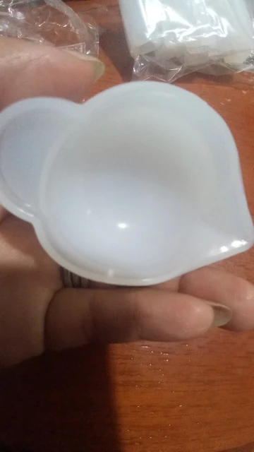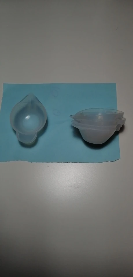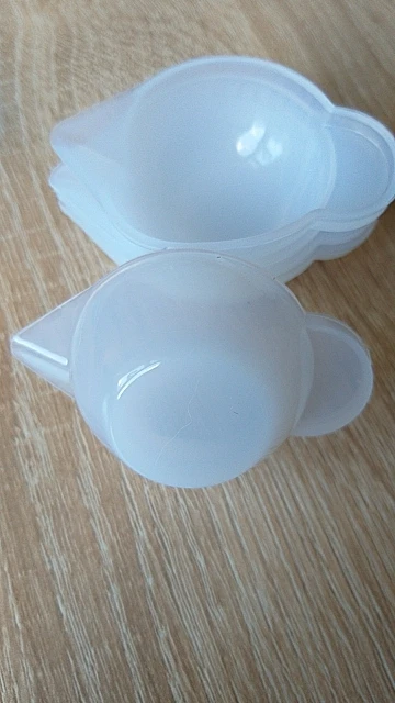 Качество супер, глянцевая поверхность, эпоксидка после использования собирается в основании. Её очень легко потом оторвать от стенок. Самые удобные из всех, что приходили с Али. Но размер маловат, влезет где-то 7-8 грамм смолы, если хотите размешать и не разлить.