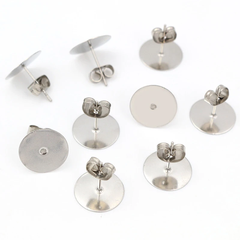 Без выцветания 100 шт.лот пустые серьги из нержавеющей стали подходят 12 мм Кабошон Камея Настройки DIY аксессуары для изготовления ювелирных изделий