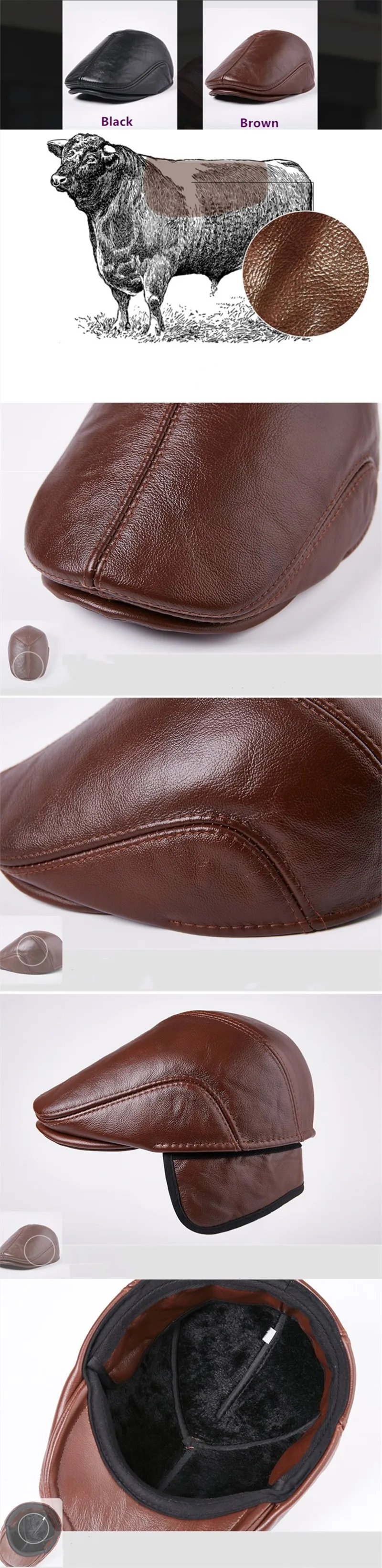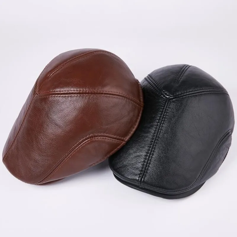 Зимняя шапка с наушниками, мужские береты из воловьей кожи, шапка и...