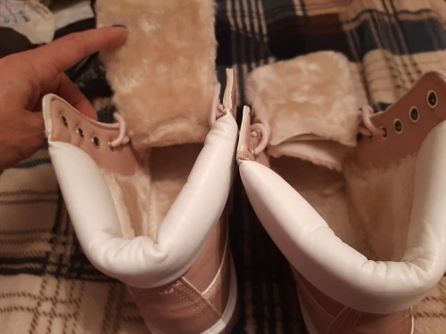 отличные теплые ботинки, по размеру хорошо подошли (у меня 37 размер), но правый ботинок пришел с браком, на язычке внутри на сгибе грубый шов, давил на ногу - мех разорван (или не сшит и жосткий шов (без меховой прокладки) давит ногу. Буду обращаться в отелье чтобы исправили.