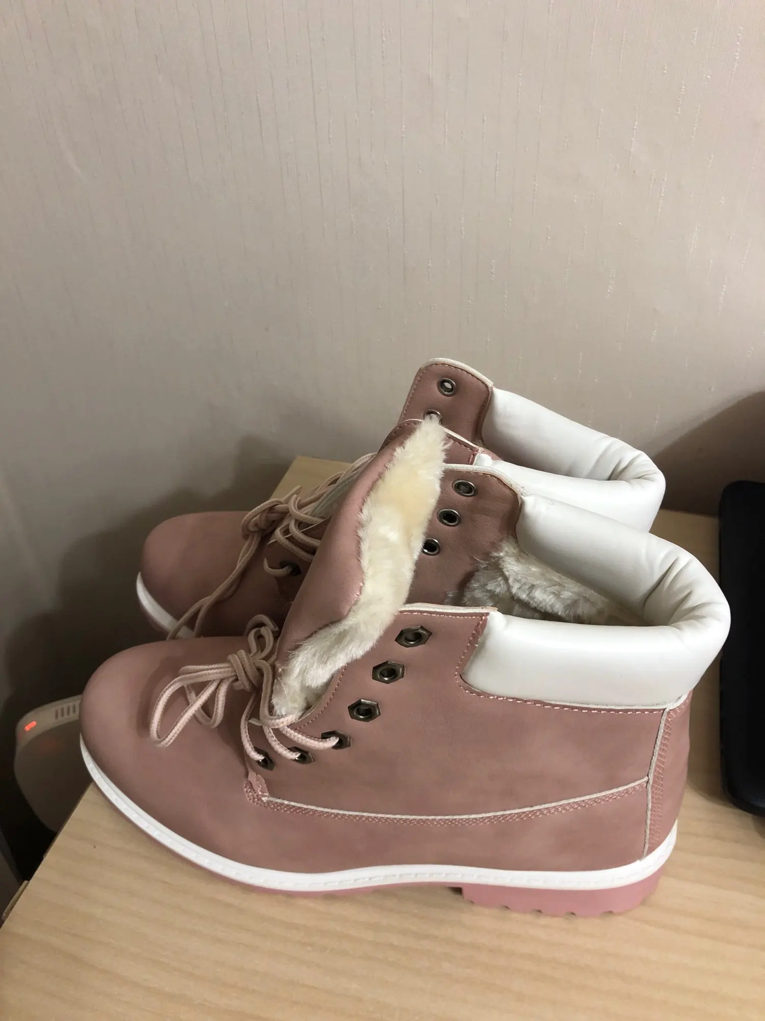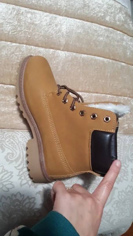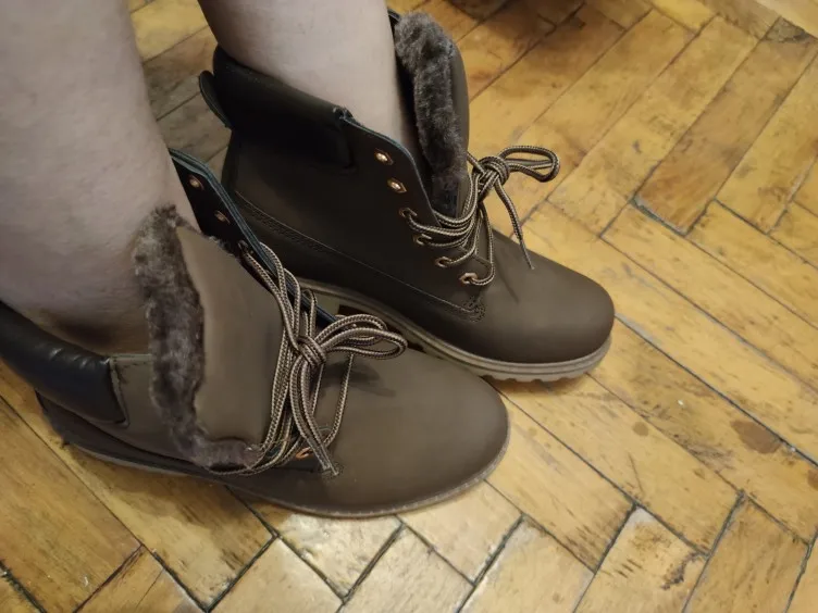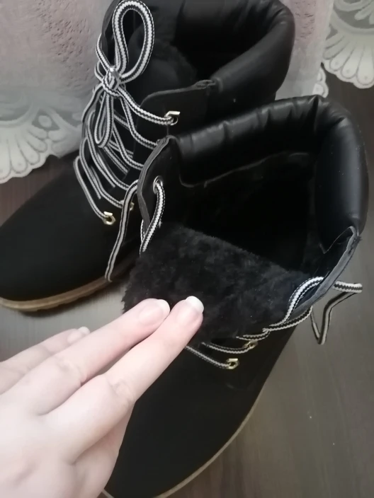 Нууу я немного расстроилась. Заказала с мехом зимний вариант, но это не нормально, что они при минусовой погоде на улице становятся жесткими, стучат по асфальту как будто деревянные...( Совсем жесткие, не сгибаются ни чуть и стучат, а главное совсем холодные при -8 градусах, ноги сразу замерзли дойдя до ближайшего к дому магазина. Короче это точно не для зимы, это осенняя обувь, мех для красоты видимо. Ещё немного странно, вроде заказывала 39 размер, а пришел 40 размер, они большие. Ну это может и к лучшему, чтобы надеть кучу носков, дабы не замерзнуть..) Ну цена конечно хорошая у ботинок.