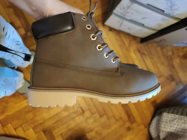 Симпатичные ботинки,даже не ожидала. Красивый коричневый цвет,все прошито аккуратно. Немного жестковаты. К сожалению, не угадала с размером. Оказались большеваты