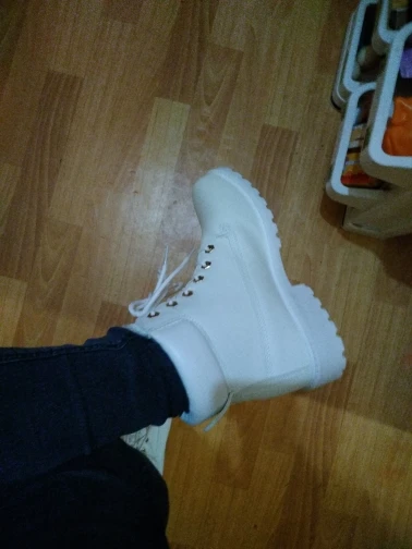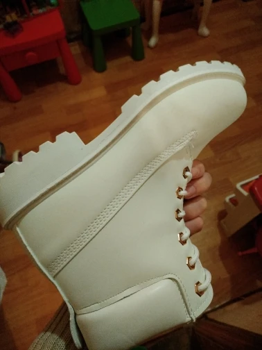 Вроде и замечаний конкретных нет, но далеко не то, что ожидалось глядя на картинку. На длину стопы 25 см (ношу 38-й) заказала 40 - великоваты. С теплым носком носить можно. Шнуровать приходится максимально туго, чтобы почти сходились края. Маркие, достаточно чиркнуть подошвой по ботинку, чтобы остался несмываемый след.