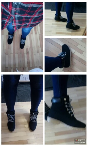 Как на картинке. Быстрая доставка. Ботинки красивые и удобные. Идеальный размер, я следовал за таблицей и за 23,6-23,8, я получил 24 см и отлично. Это имитация кожи, но она не выглядит как пластилин. Очень рекомендуемое качество цены.