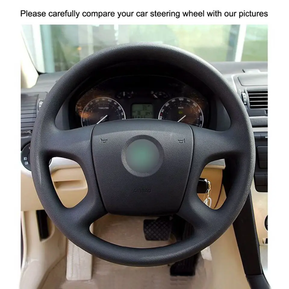 Черная искусственная кожа Чехол рулевого колеса автомобиля, сделай сам, сшитая вручную, для Skoda Fabia 2005-2009, Octavia 2004-2009, Roomster 2006