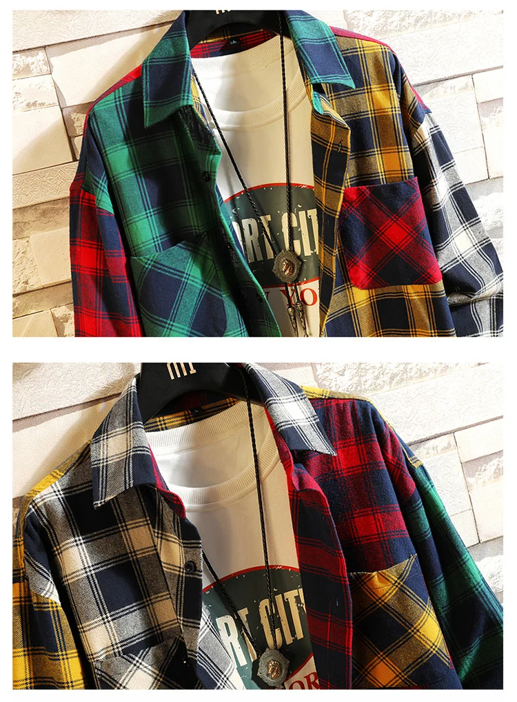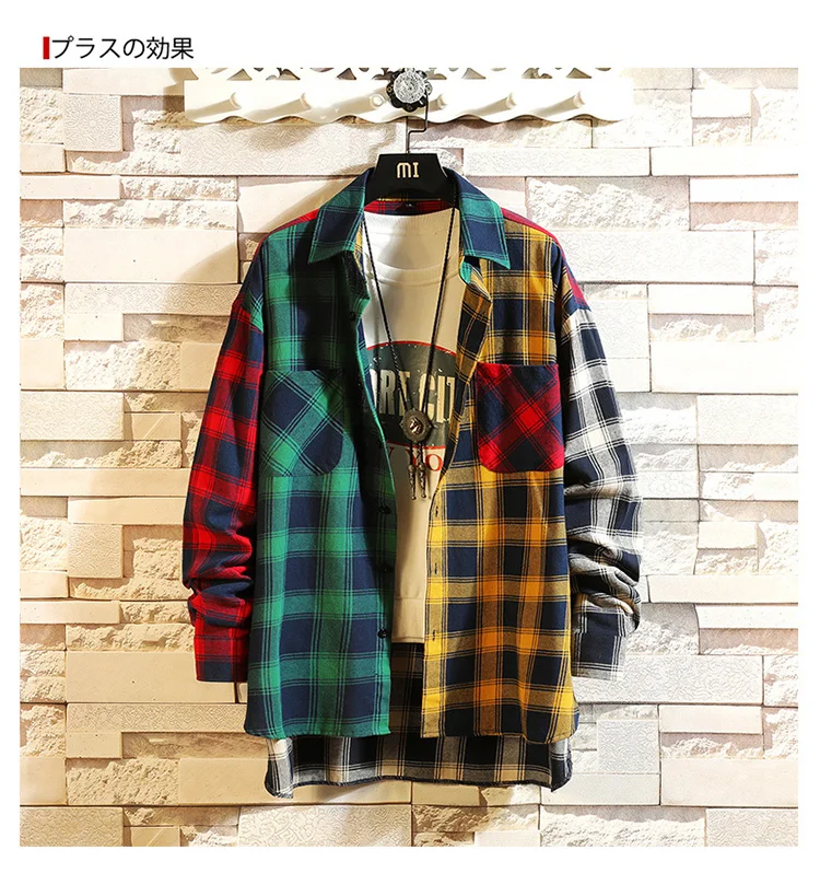 Мужская рубашка в клетку, Повседневная Свободная рубашка в стиле хи...