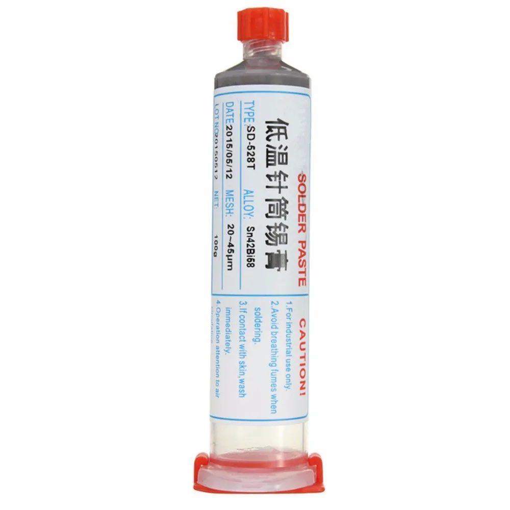 Высокое качество 100 г Sn42Bi58 SD-528T низкая температура SMT СВЕТОДИОДНЫЙ бессвинцовый SMT паяльная паста точка плавления 138 градусов + иглы