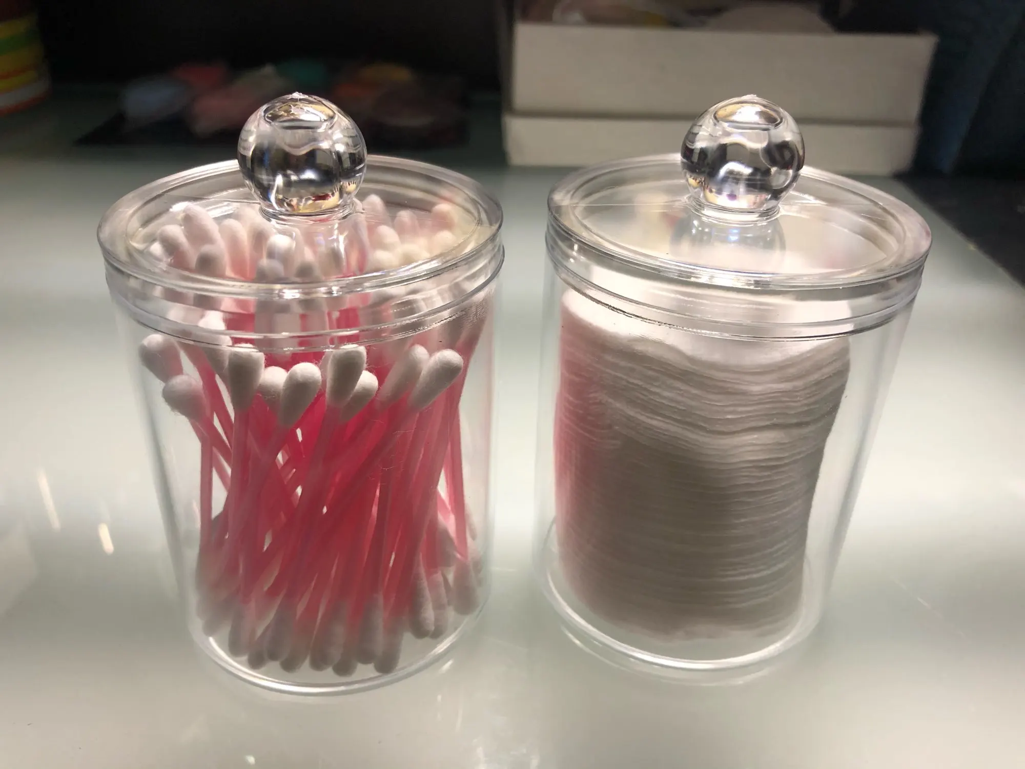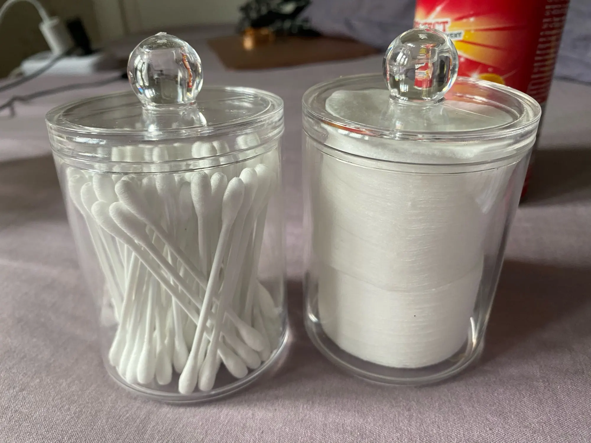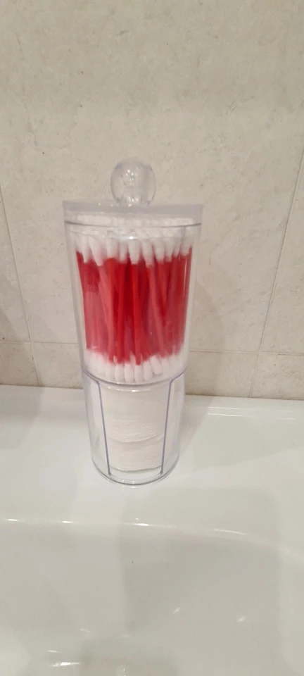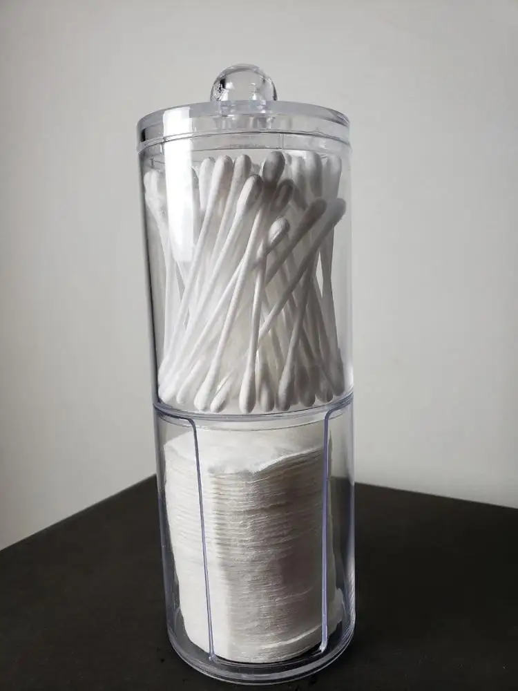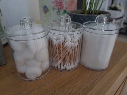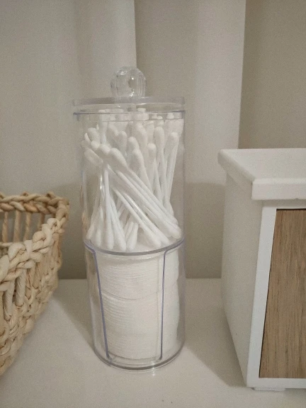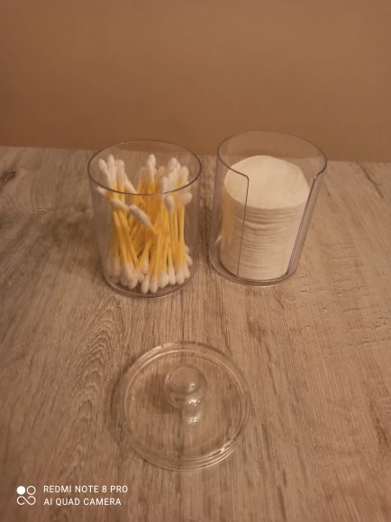 Пришло быстро. Продавец упаковал отлично, всё целое. Качество хорошее, по описанию совпадает полностью. 2 раздельных контейнера, крышечка. Под ватные диски и палочки всё подходит. Советую! Отличный предмет интерьера! :)