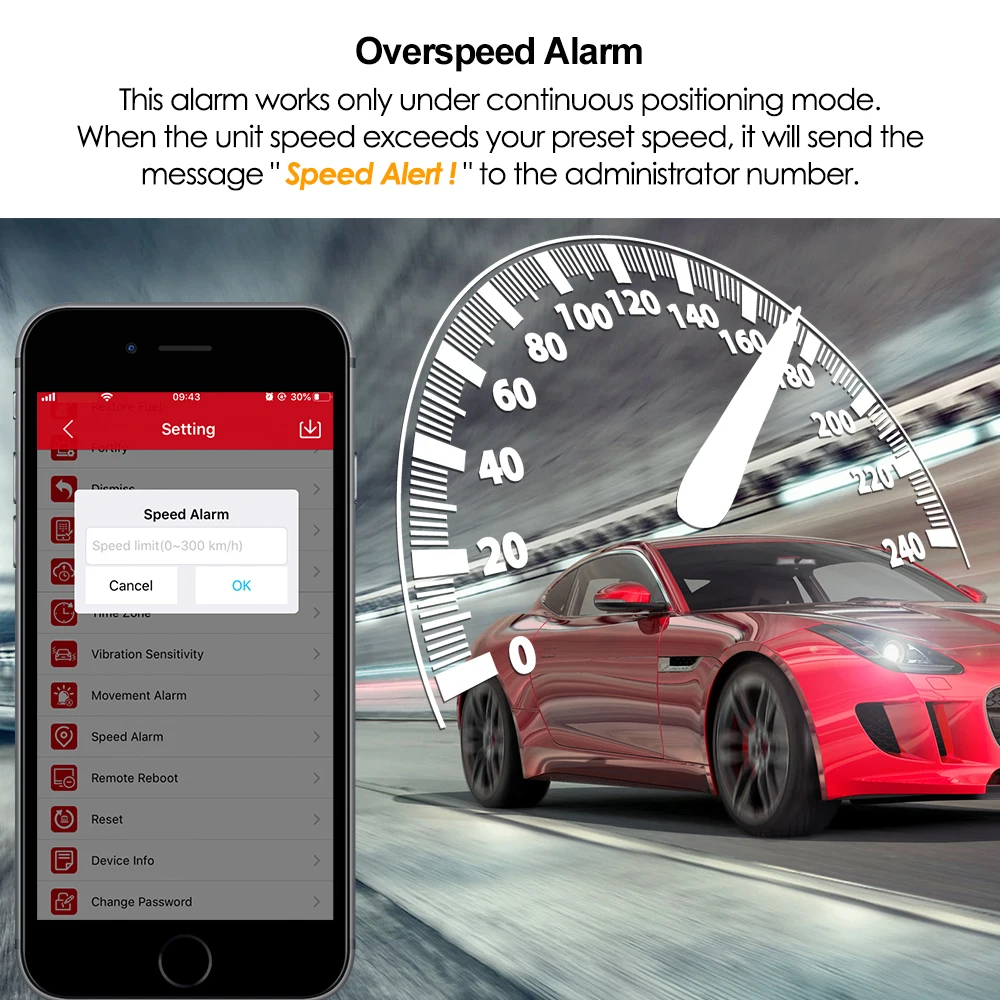 Эта сигнализация работает только в режиме непрерывного позиционирования.Когда скорость устройства превышает указанную скорость, она отправит сообщение ldquospeed alarm!rdquo на номер admin