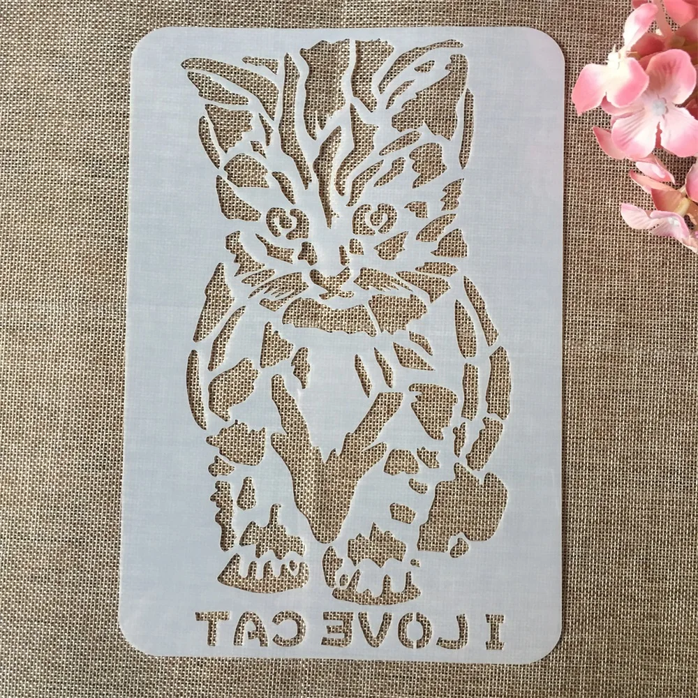 18*26cm Sit Down Cat I Love Cat DIY Layering Stencils Painting Scrapbook Coloring Embossing Album Decorative Card Template