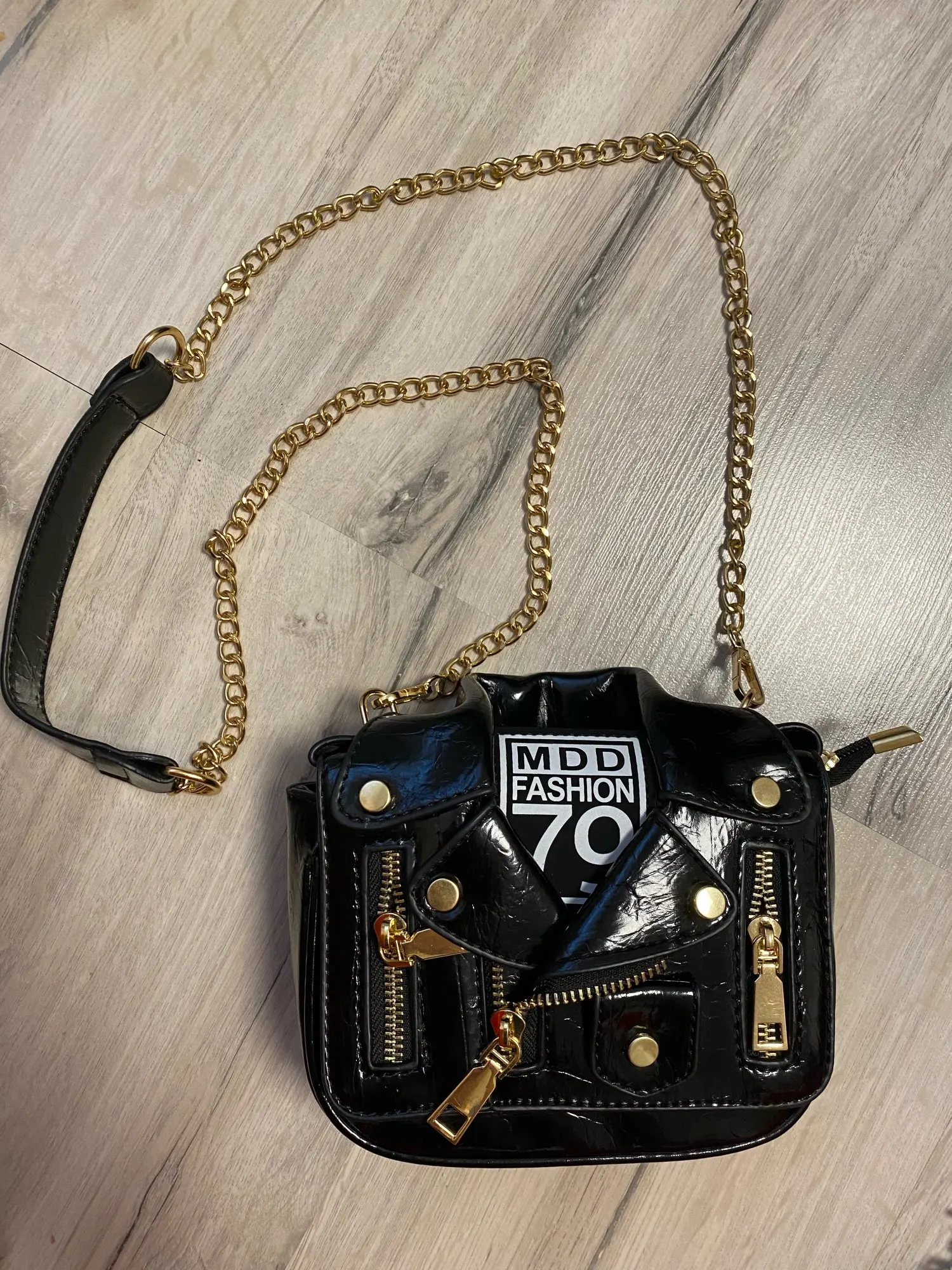 Сумка классная, но очень маленькая - еле входит телефон. Внутри одно отделение, на замочке. Длина ручки никак не регулируется, для ребкнка очень длинная. Пришлось просто цепь завязать узлами.