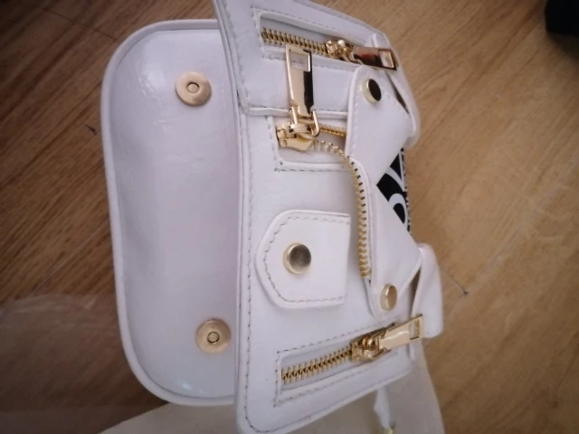 сумка приехала чисто белая,хотя на фото она кремово серебряная.ну ничего в целом красивая