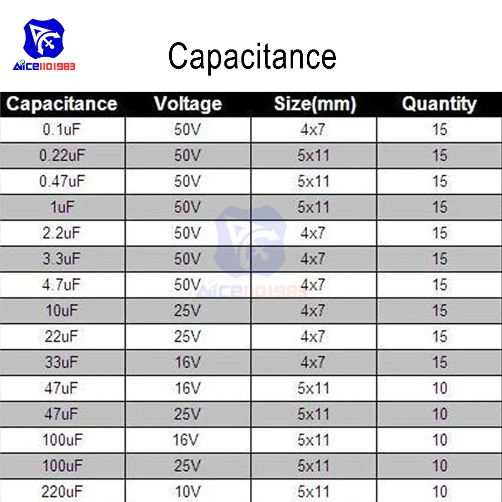 Алюминиевый электролитический конденсатор, 200 шт., 15 значений, 10В 16В 25В 50В 0.1F 0.22F 1F 3.3F 10F 47F 100F 220F, низкий ЭПС конденсатор
