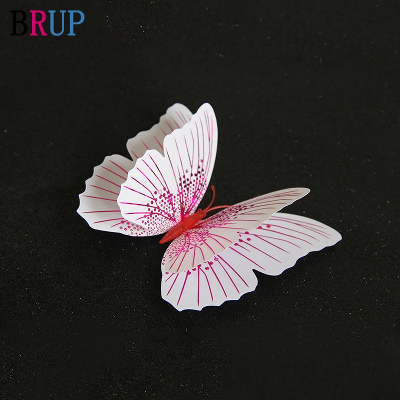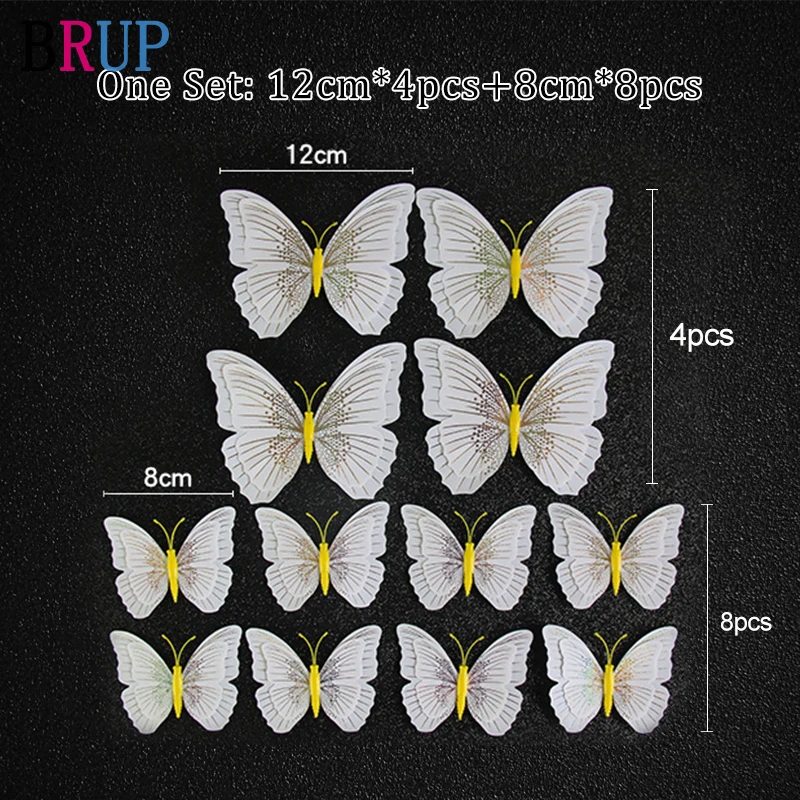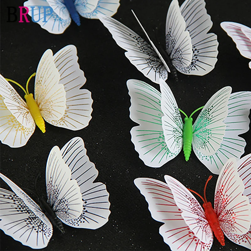 12 шт.лот 3D двухслойная Блестящая бабочка Наклейка на стену для украшения дома Декор для дома бабочки для вечеринки холодильника Свадебная вечеринка