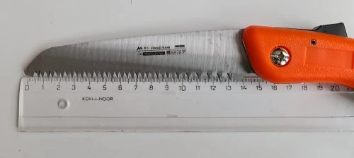 Verzending naar Nederland 18 dagen. Zaag nog niet getest. Kwaliteit van de handzaag is minder dan ik had verwacht. (duidelijk een achteruitgang tov mijn opklap handzaag van een A-merk die ik hiervoor had) Hij heeft geen beveiliging bij dicht klappen dus de zaag zou zomaar open kunnen klappen. Aangezien het blad vrij stoef open en dicht gaat, zal dit echter niet heel snel gebeuren, denk ik. Zaagblad is relatief dun waardoor die ook wat flexibeler is, weet niet of dit fijner is met zagen of juist niet.. Omdat hij flexibeler is, heb je bij het dichtklappen vaak dat hij niet recht in het "gootje" komt, maar ernaast op t plastic.