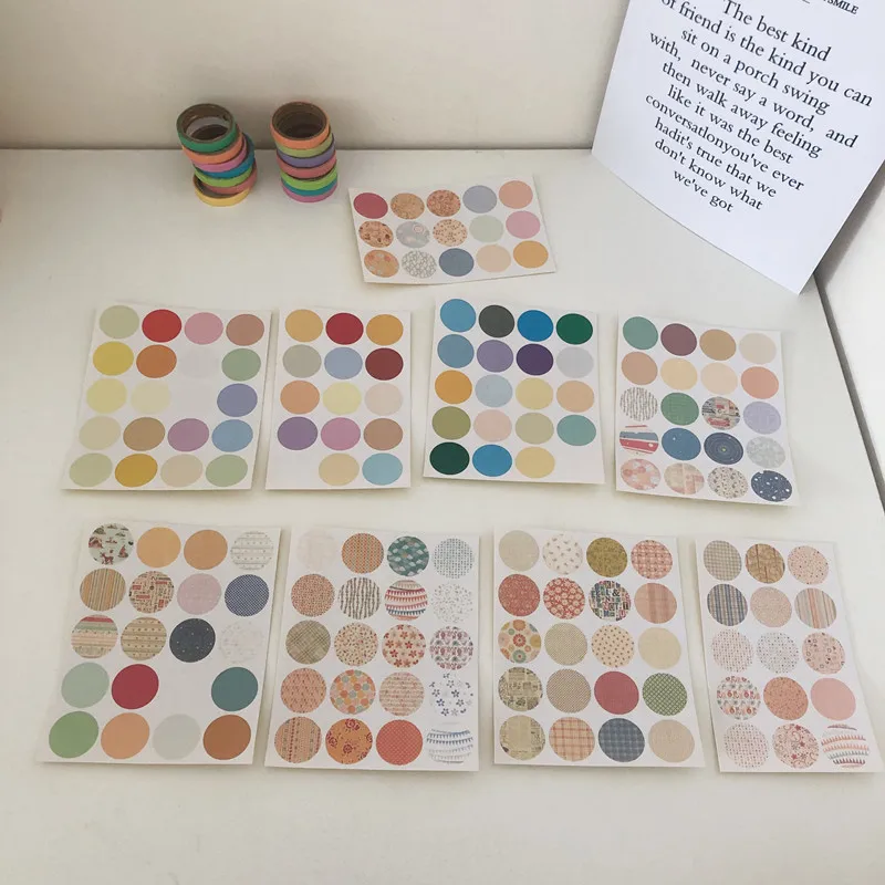 SIXONE 9 комплектов, цветные круглые декоративные наклейки, бумага, руководство, карта, наклейка для фотографий, наклейки для ноутбука, канцелярские принадлежности, Уплотнительная паста