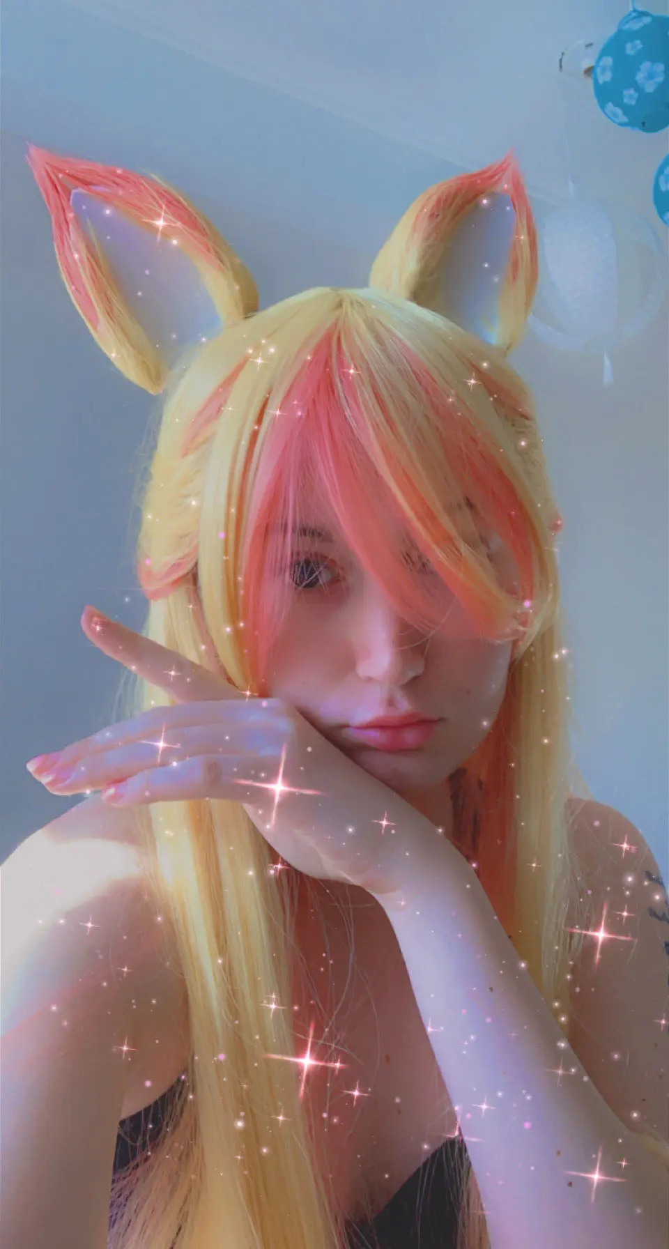 Парик для косплея LOL Ари гумихо, термостойкие длинные волнистые волосы с эффектом омбре, золотисто-розового цвета для костюма, с шапочкой