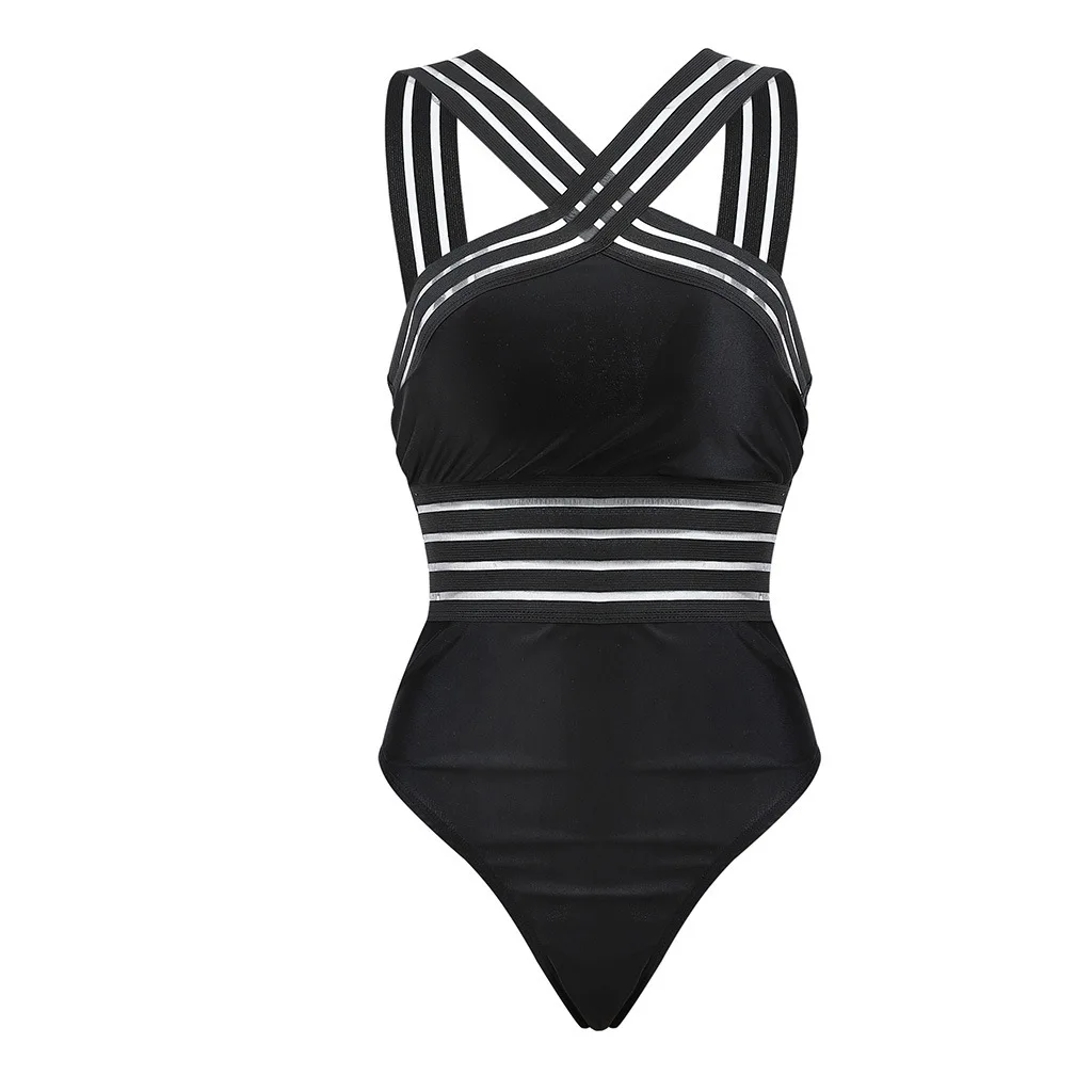 Соблазнительное черное Полосатое слитное бикини, женское Бандажное ...