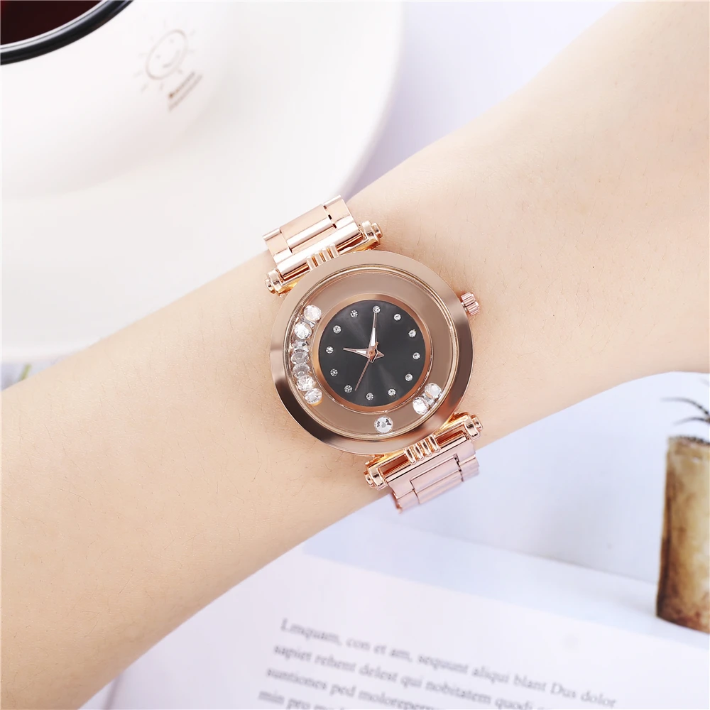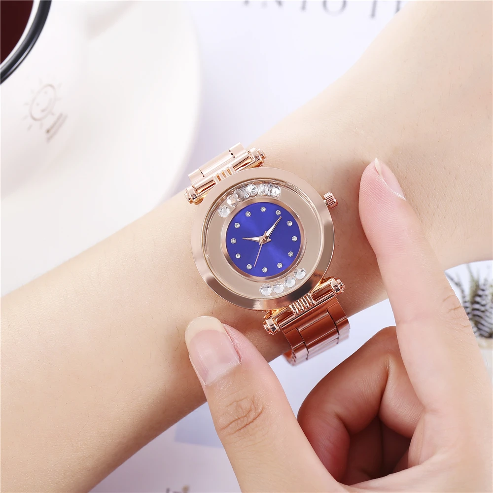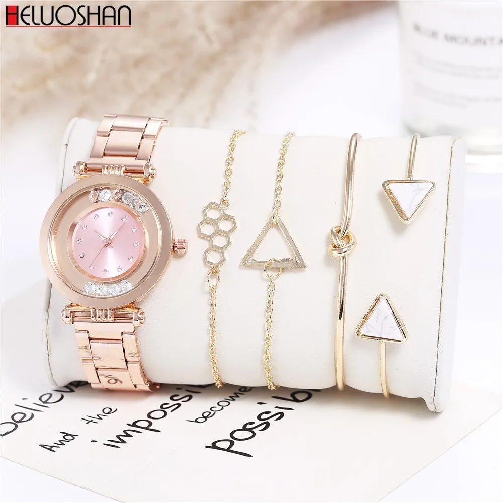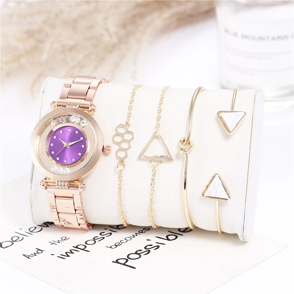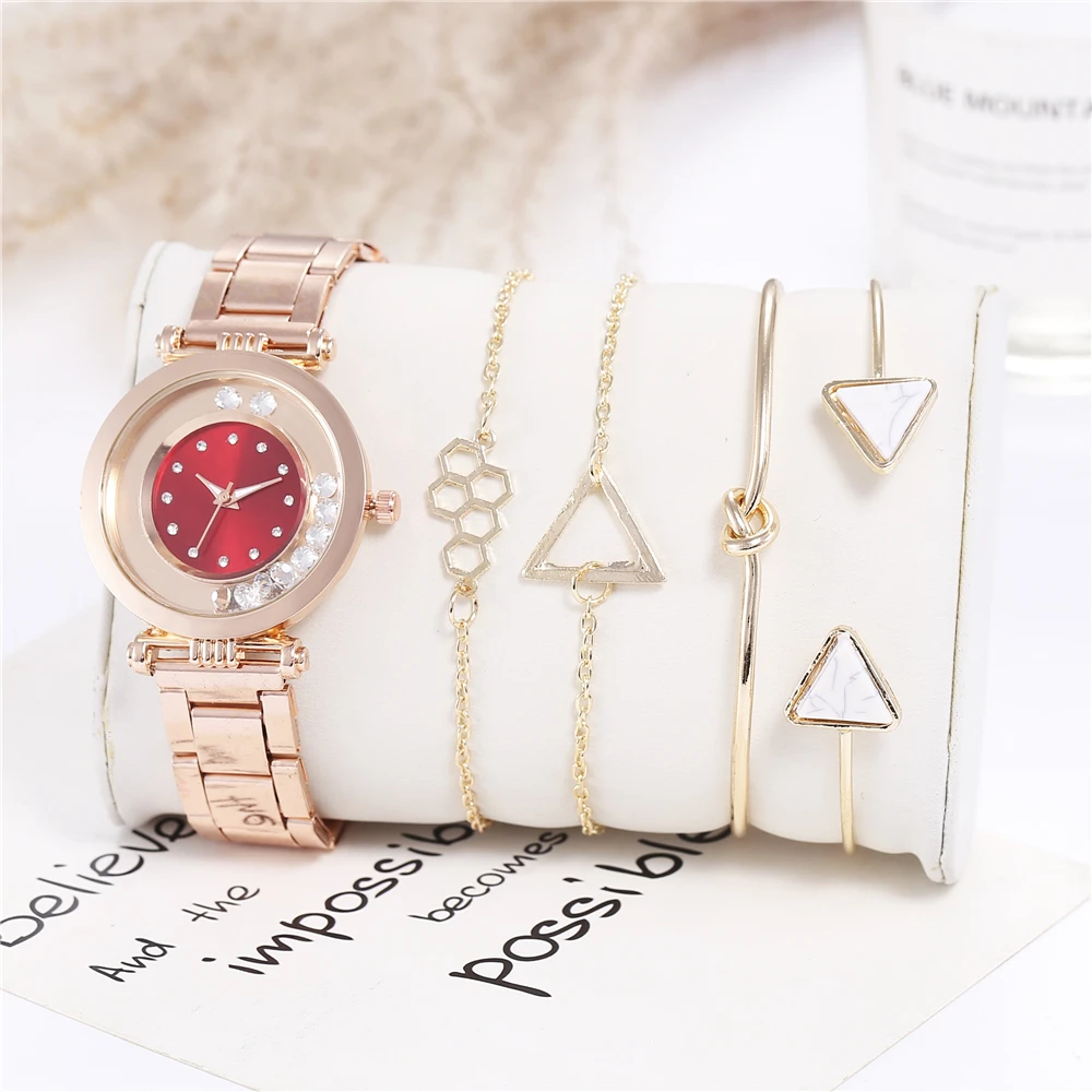 5 шт.компл. модные роскошные Брендовые женские часы с круглым кристаллом и браслетом, кварцевые наручные часы цвета розового золота, женские наручные часы, женские часы