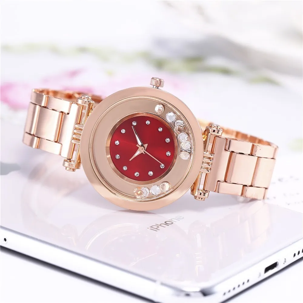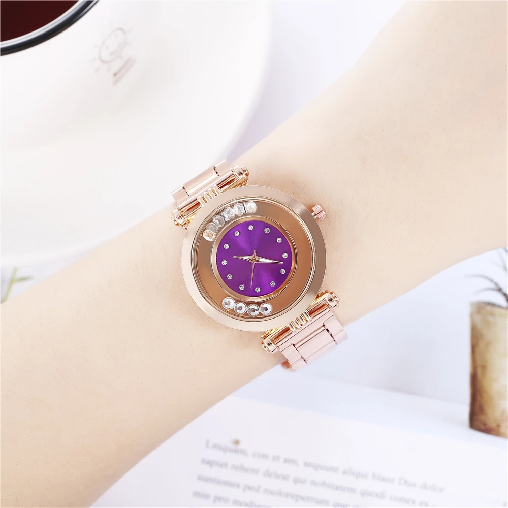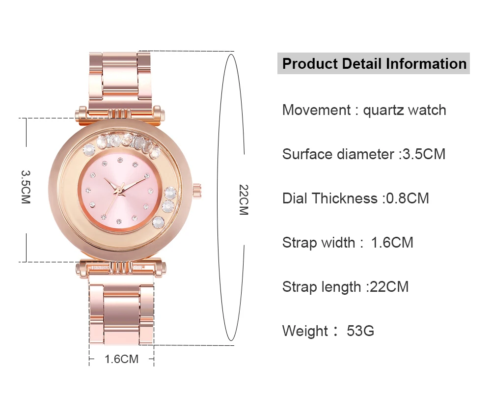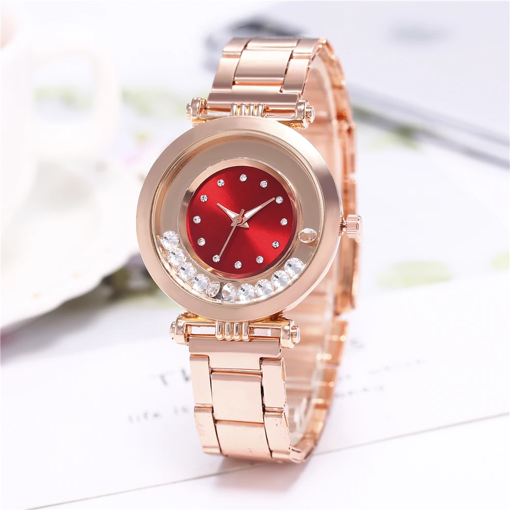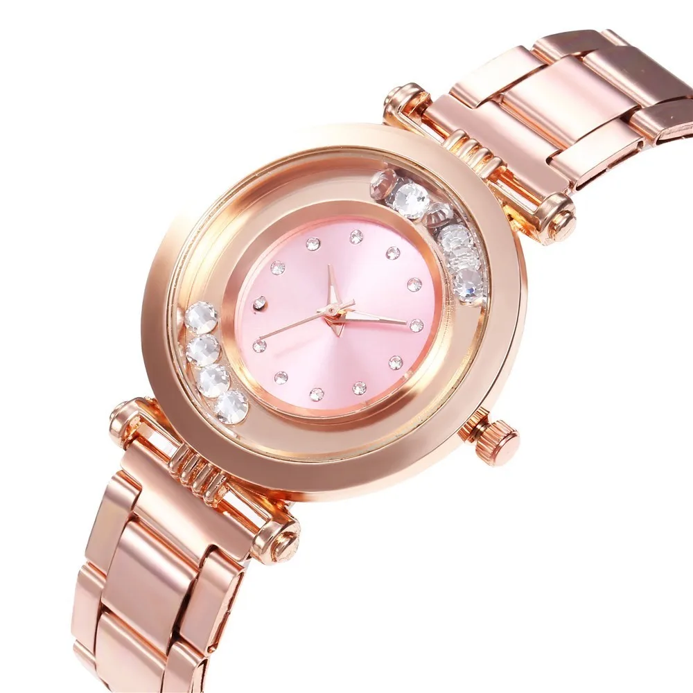 5 шт.компл. модные роскошные Брендовые женские часы с круглым кристаллом и браслетом, кварцевые наручные часы цвета розового золота, женские наручные часы, женские часы
