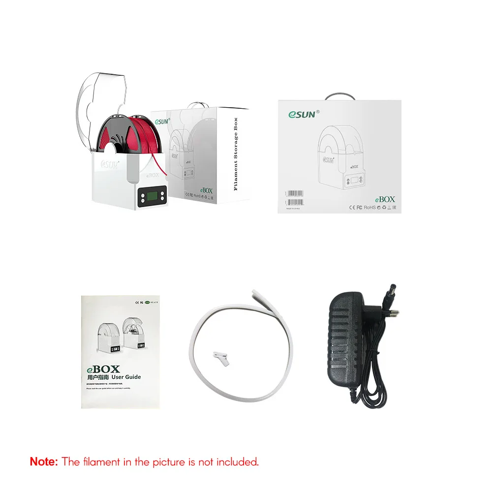 Особенности:EBOX может Выпекать нить при определенной температуре в течение нескольких часов.Он также может весить вашу нить, чтобы вы знали, сколько нити осталось.EBOX предназначен для сохранения сухости нити и осушения различных видов нитей, особенно тех, которые чувствительны к влаге.Со специальным баком для сушильной сумки и противоскользящей подушкой для ног.Это отличный компаньон для любых 3D принтеров FDM.Характеристики:Адаптер питания: AU/US/EU/UK для опцииНоминальная Мощность: AC100-240V ~ 50/60HzВыходная мощность: DC12V ~ 3AМощность сушильного нагревателя: 36 Вт