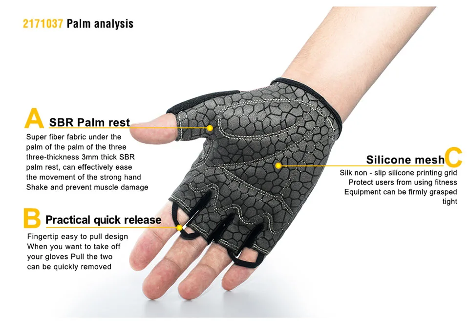 Перчатки спортивные, силиконовые, Нескользящие, дышащие, с открытыми пальцами