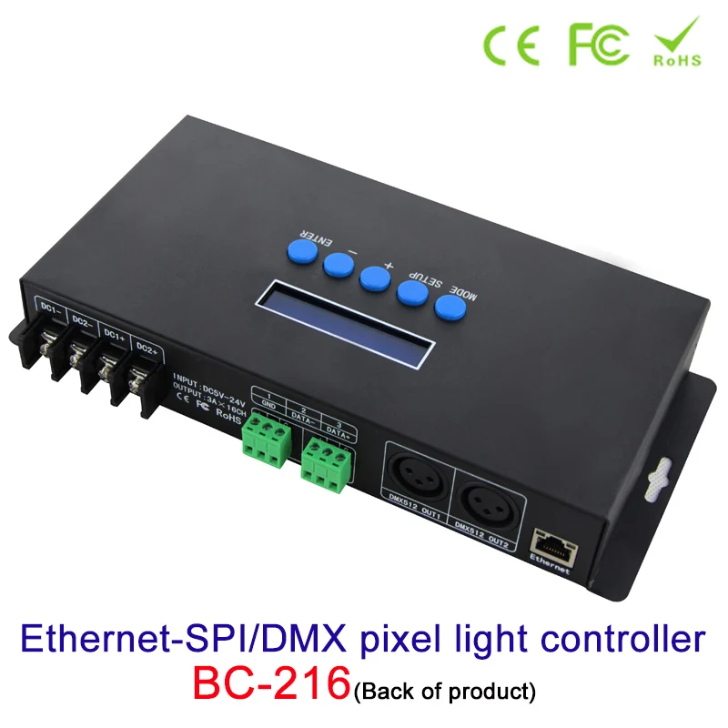 Новый Artnet Ethernet на SPIDMX пиксельный светодиодный светильник контроллер BC-216 DC5V-24V 3Ax16CH Поддержка ArtnetArtnet и sACN E.1.31 протокол
