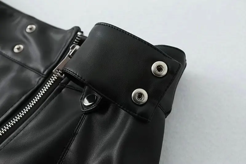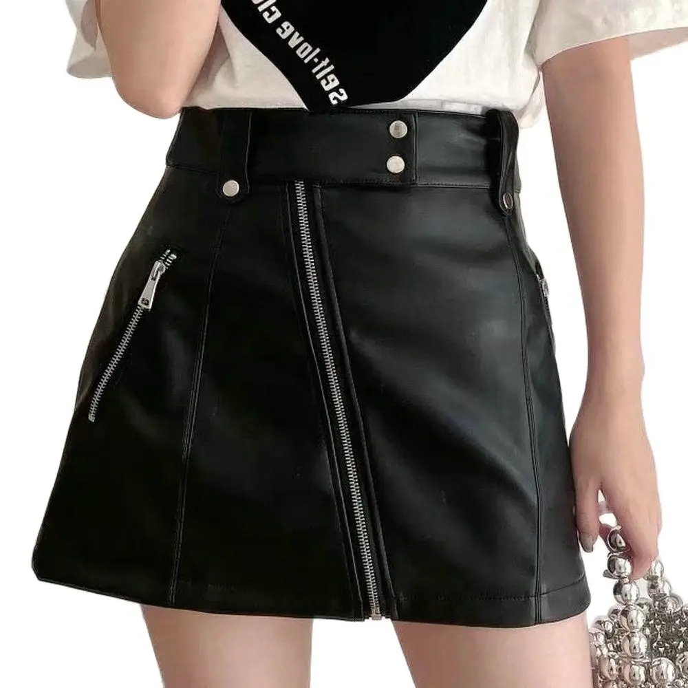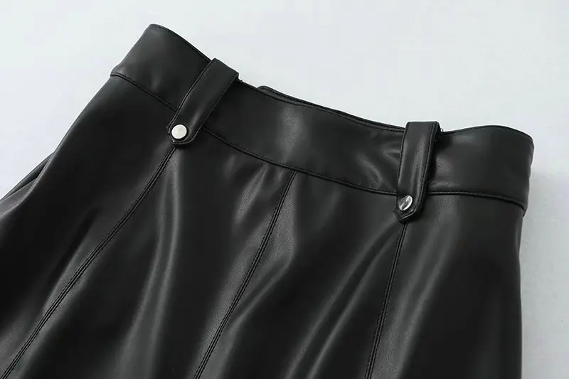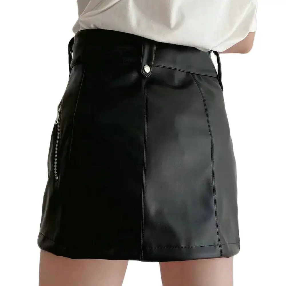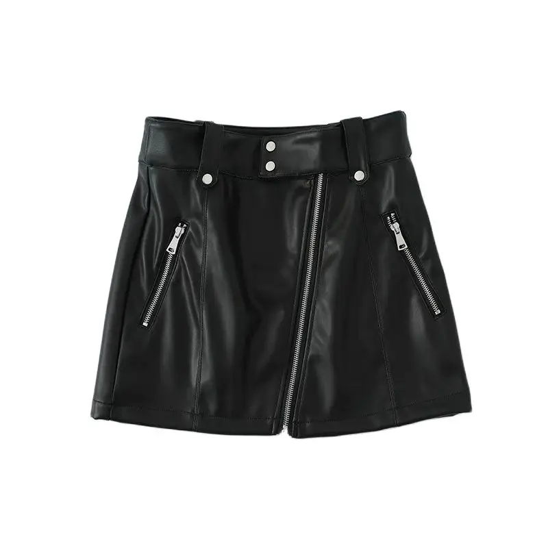 Женская мини-юбка из искусственной кожи, черная трапециевидная юбка на молнии с карманами и высокой талией, Осень-зима 2021