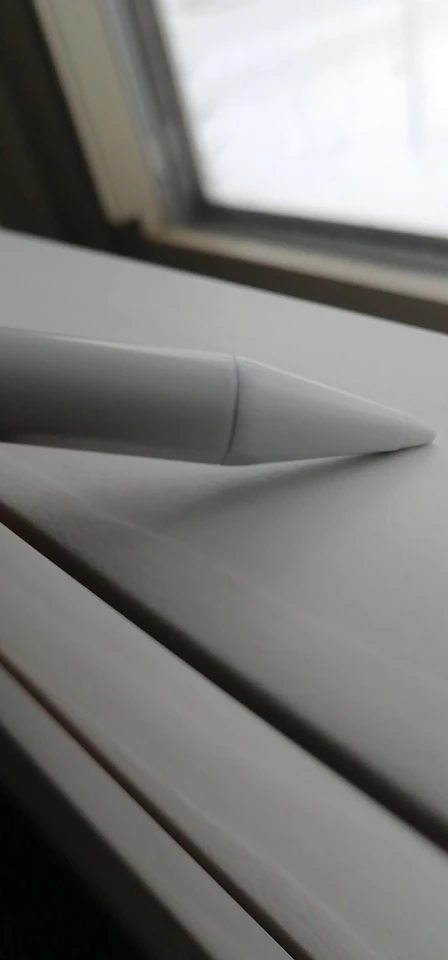 Карандаш выглядит на решетке. Поставляется с 2 сменными перьями. Он автоматически соединяется с моим ipad 2019. Отлично работает. Я бы посоветовал использовать простую защиту экрана, чтобы не допустить царапин на нем. Без датчика давления tho :(