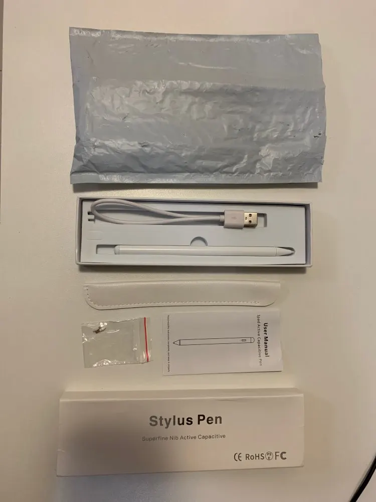 Пришло быстро, доставил курьер в жопу мира. Ручка увесистая, привыкла быстро. В комплекте чехол/наконечники и провод, все как положено. Экран не царапает. Стилус без силы нажатия, но мне это не особо важно. Зарядку держит достаточно долго. Единственный минус для меня - сенсорный выключатель, концом задеваю пузо и он выключается , но к этому тоже можно привыкнуть. Однозначно лучшая замена эпл пенису