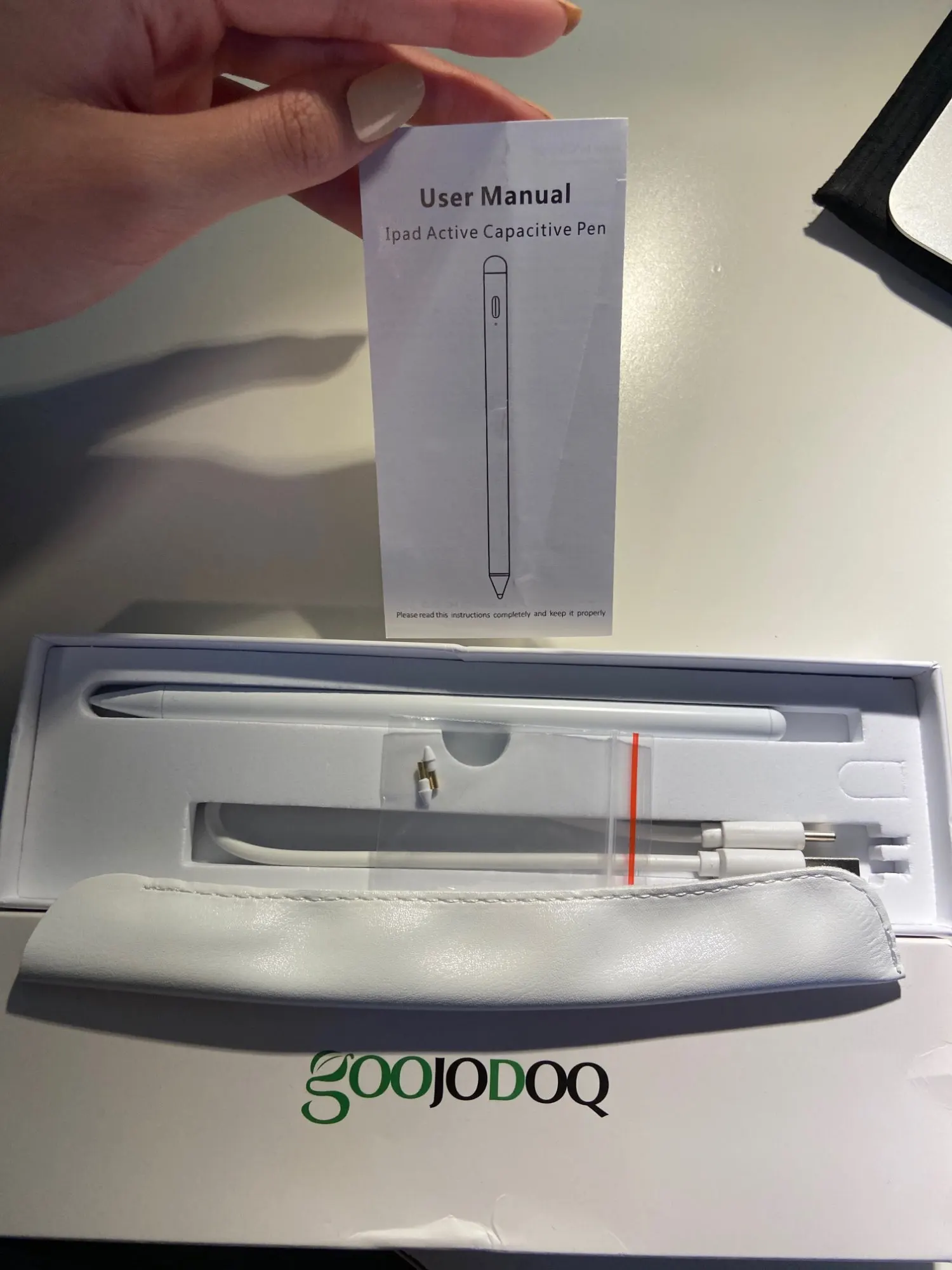 Мне нравится! Поставляется с руководством пользователя, чехлом для ручки, 2 запасными наконечниками для ручки и шнуром для зарядки. Ручка также очень проста в использовании и по этой цене я действительно рекомендую ее. Я живу в Нидерландов (Европе), и доставка была очень быстрой! Я думаю о 10?15? Дней