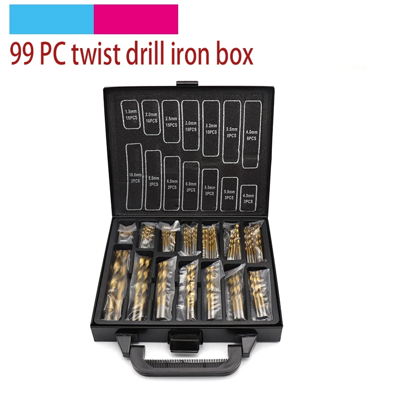 99 шт. Титан покрытием 1,5-10 мм HSS сверла железный ящик в качестве упаковки набор для сверления дерева металла Пластик электрические инструменты