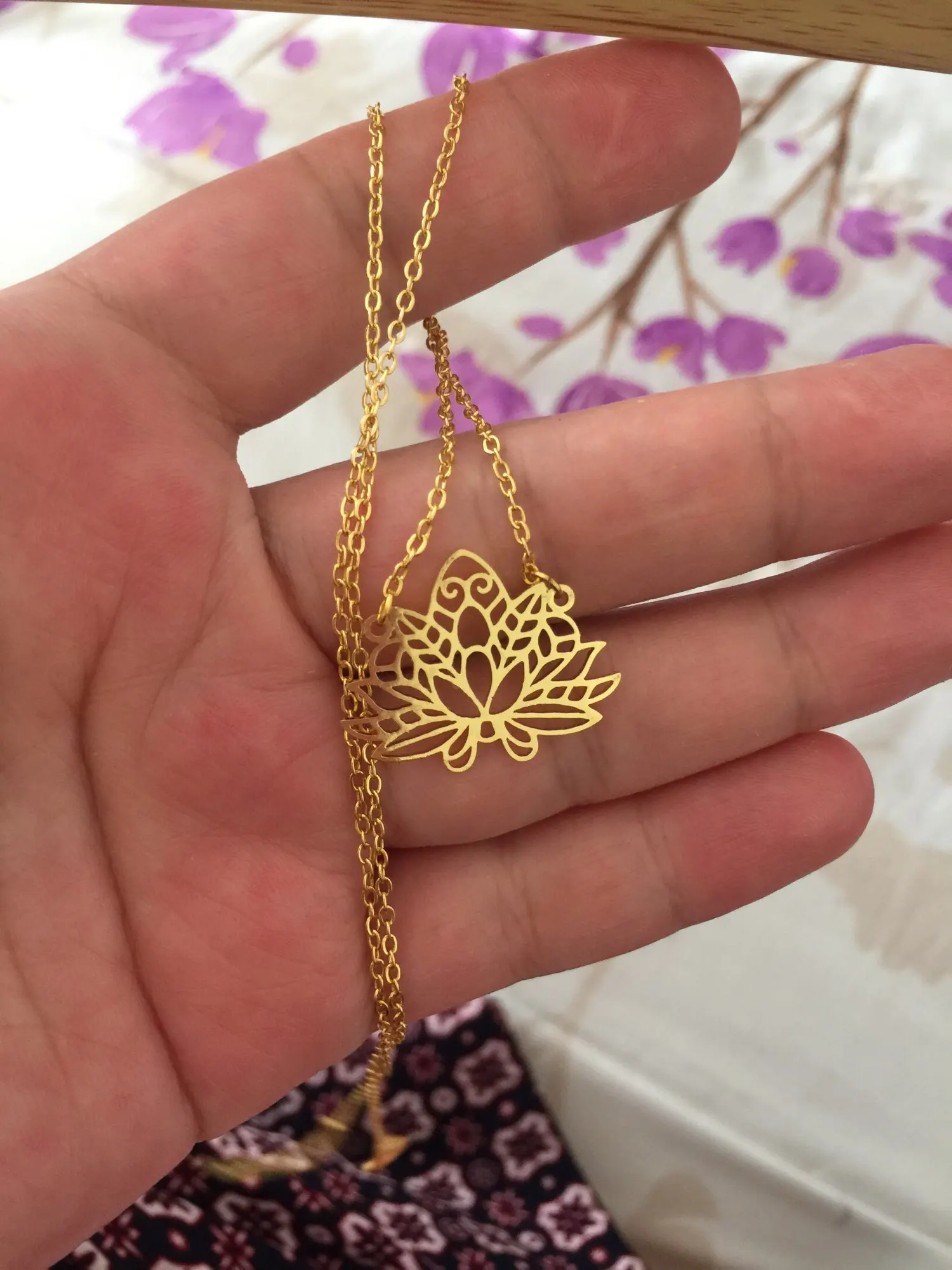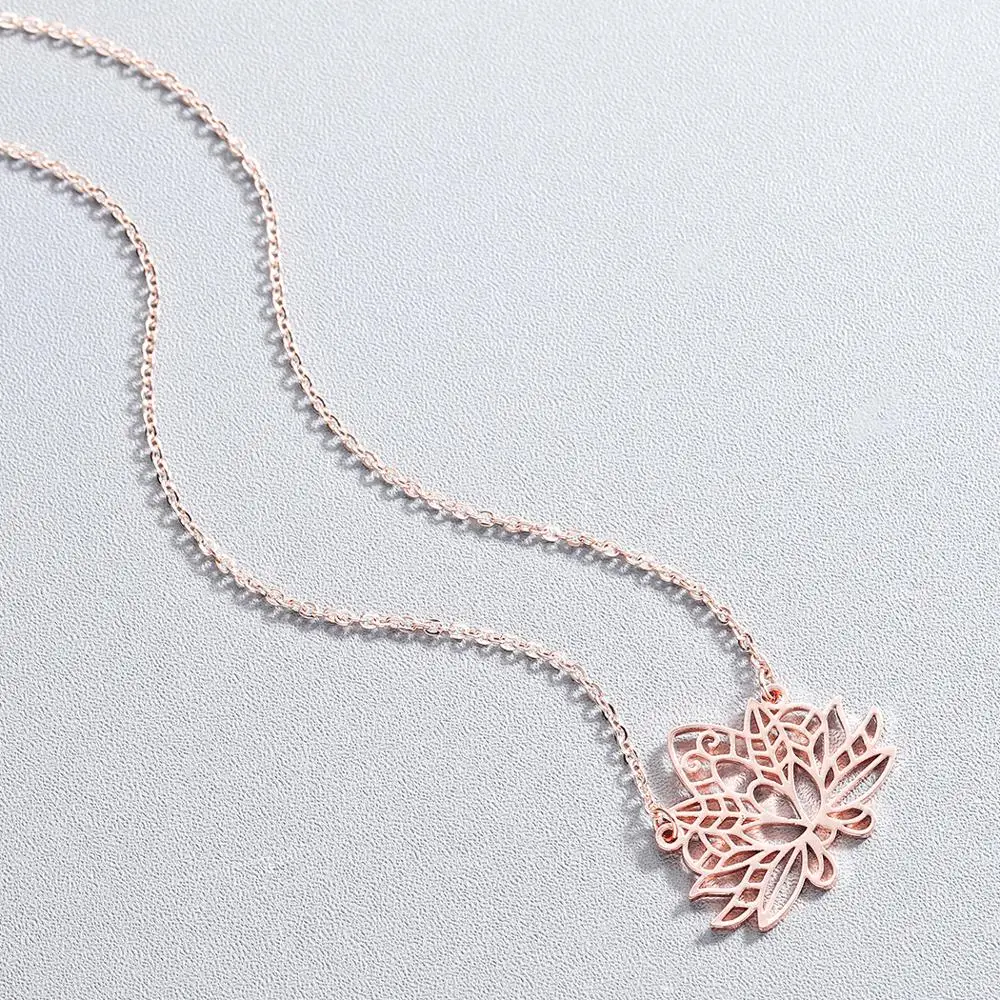Колье Chandler из нержавеющей стали с цветущим цветком лотоса, ожерелье с цветком оригами золотистого цвета, ошейник розового золота для йоги, мусульманский подарок Вечерние