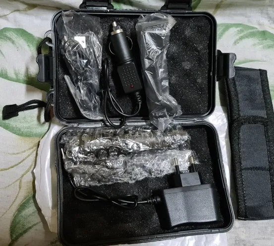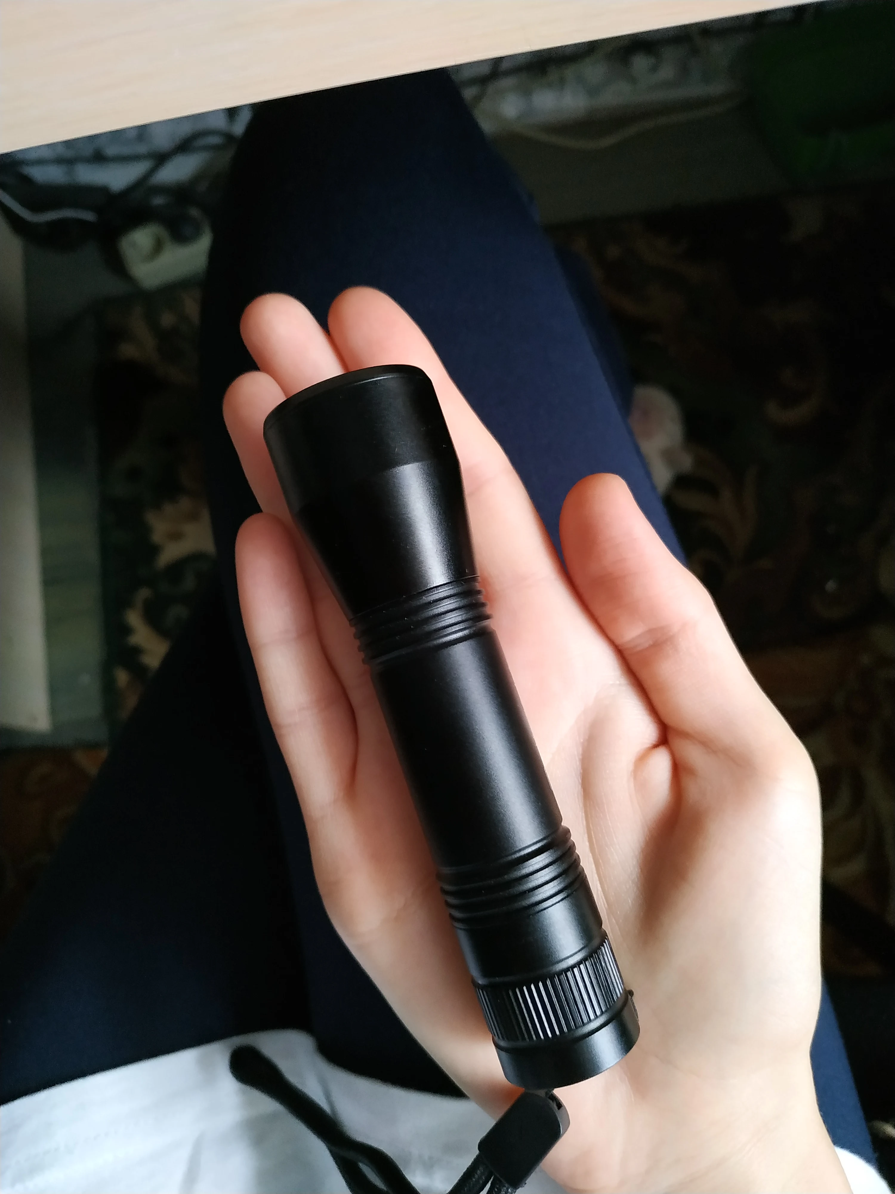 Фонарь мощный. Есть несколько режимов свечения (3 режима мощности, стробоскоп и СОС). Режимы переключаются неполным нажатием на кнопку включения/выключения. Светодиод только УФ, обычного света нет. Светит довольно ярко не смотря на уф свет. Фонарь пришёл в своём кейсе с 3мя видами зарядных и ножнами для ношения на ремне. Есть петля для ношения на запястьи. Из минусов: короткие провода у зарядок, мало пупырки для упаковки (у поей коробки отломился кусочек застёжки. Для себя брал - поэтому пофиг, а вот если бы в подарок, то был бы облом - такое уже не подаришь). В целом покупкой доволен, если не считать, что пришлось побегать по городу в поисках той транспортной компании, в которой пришла посылка (запрашивайте подтверждение трек номера и адрес доставки у этого продавца). А в остальном всё хорошо, на письма отвечает, все корректно.