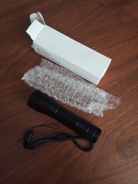 Посылка пришла очень быстро. Ультрафиолетовый фонарик рабочий.