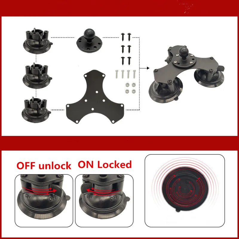 Автомобильное окно с поворотным замком с тройной присоской с отверстием в усилителе с 1 дюймовым шаровым креплением для Gopro камеры смартфона, Garmin