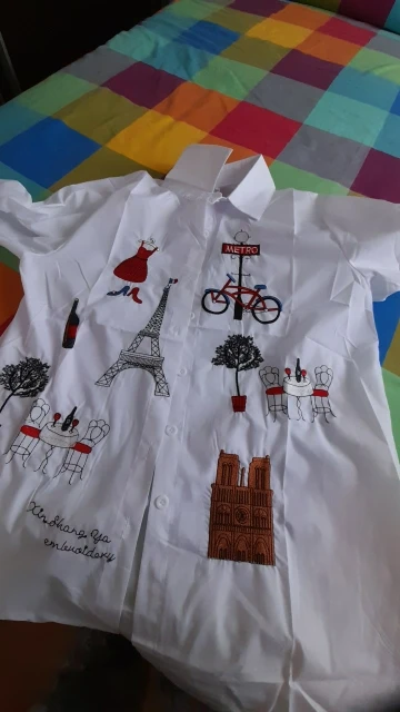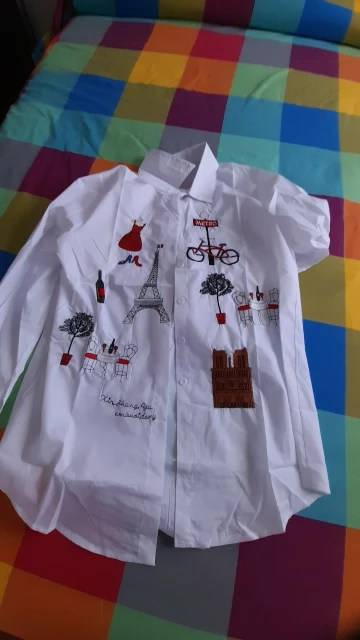 Это второй раз, когда я заказываю, они великолепны с хорошей вышивкой и хорошей тканью. Практически не мнется при глажке или сушке. Я заказал размер M, как в Испании, и отлично. У меня есть грудь 95
