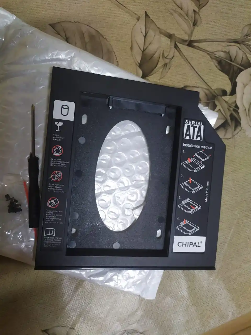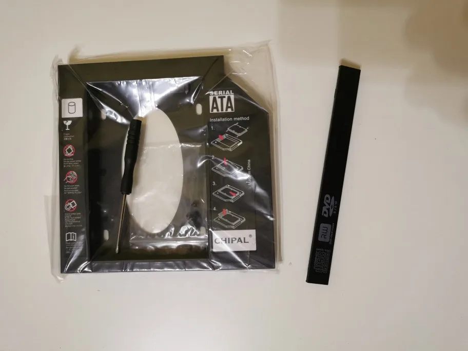 Очень хорошая вещь. Устанавливается как родной. Боковая панель снимается и ставится от снятого dvd привода. Отвертка в комплекте магнитная, что тоже очень удобно. Что бы винты не проскакивали в отверстия не нужно их вкручивать со всей силой, только до легкого упора.